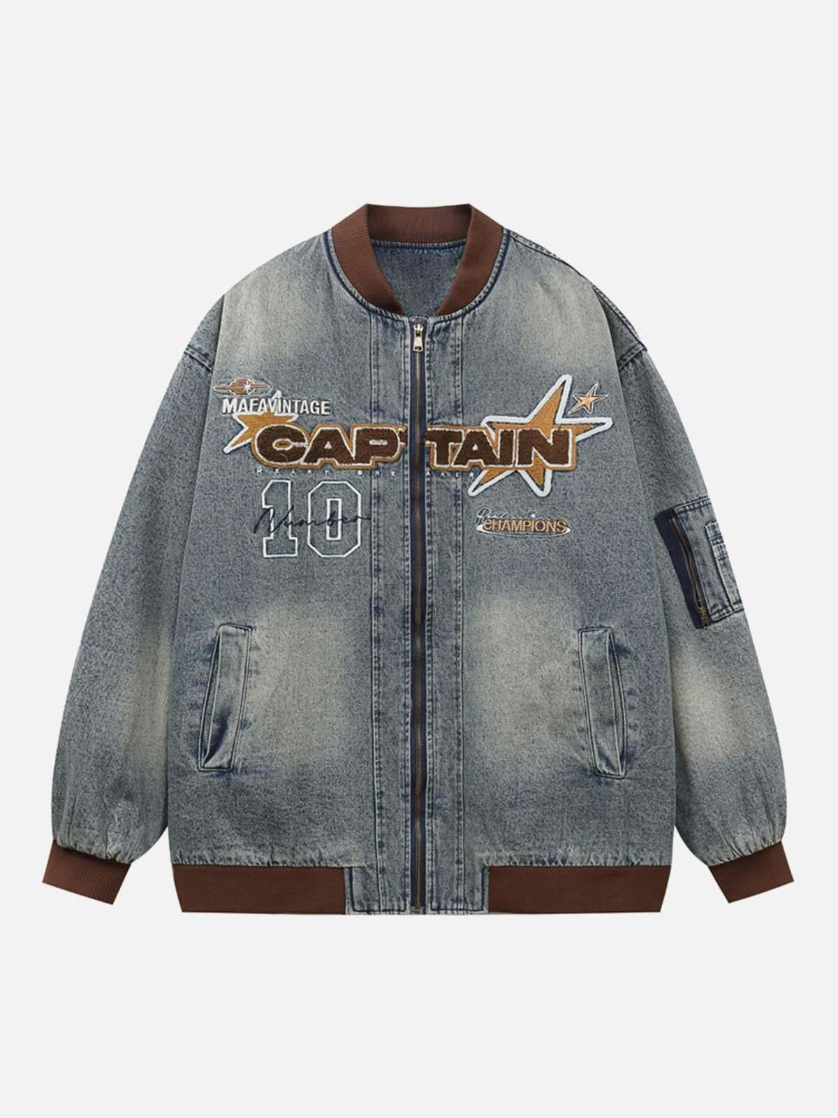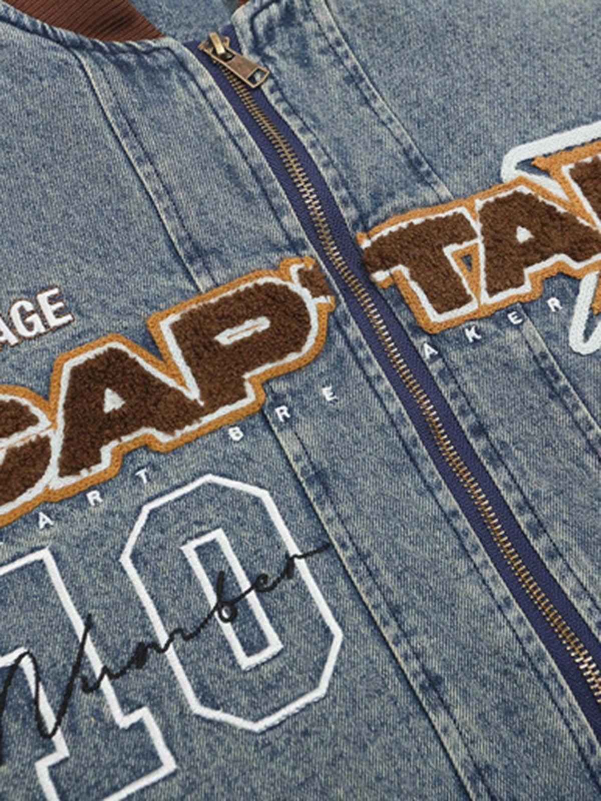 Concert Outfit Alphabet Patch Embroidered Quilted Denim Bomber Jacket High-quality product featuring concert outfit ideas, country concert outfit, outfit inspo and more. Modern design that fits the latest trends. Premium materials ensure durability and comfort. Order now for special offers! Product designed with attention to every detail. Suitable for all occasions and personal styles.