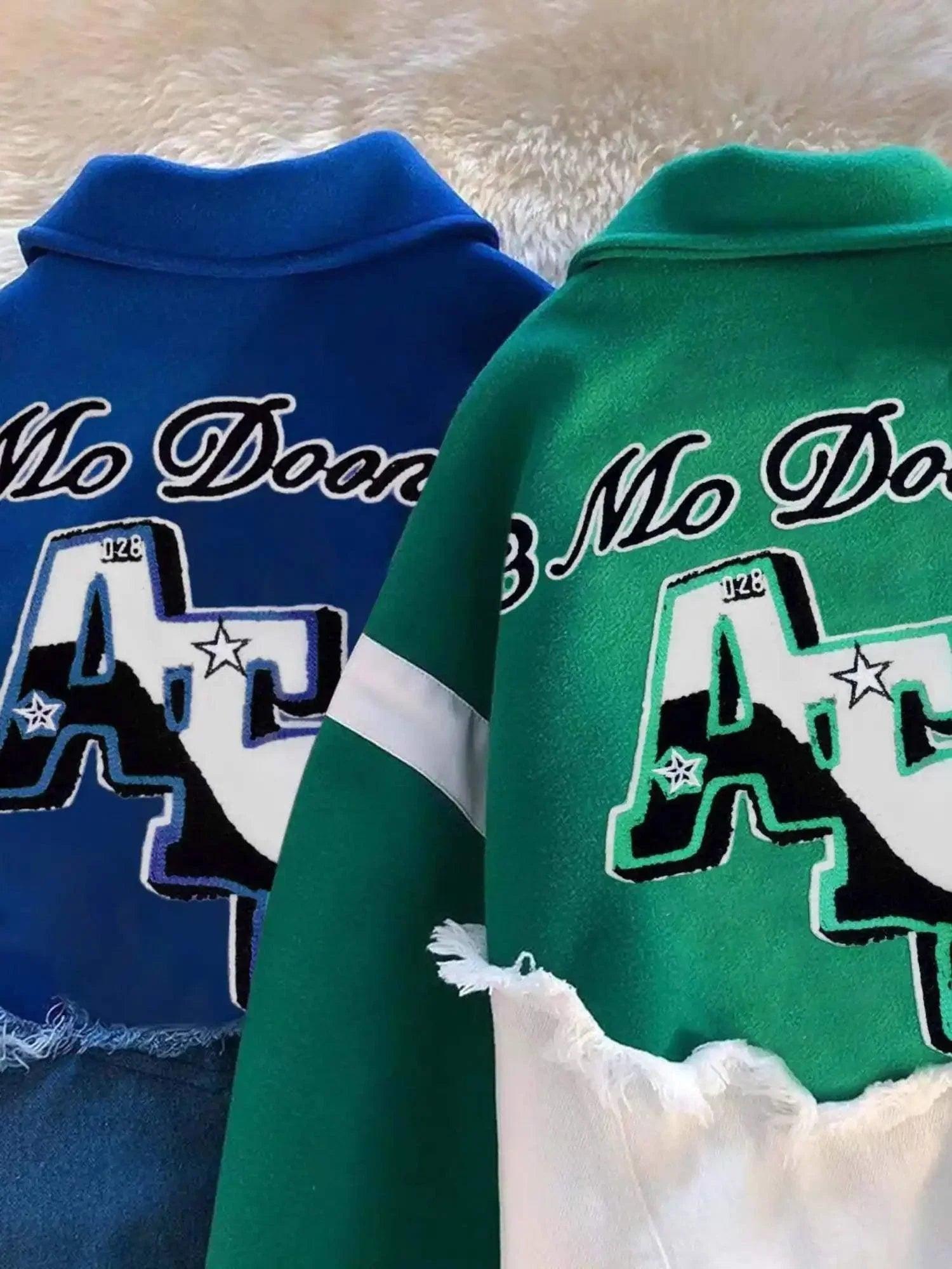 Concert Outfit American High Street Denim Fabric Splicing Baseball Jacket
