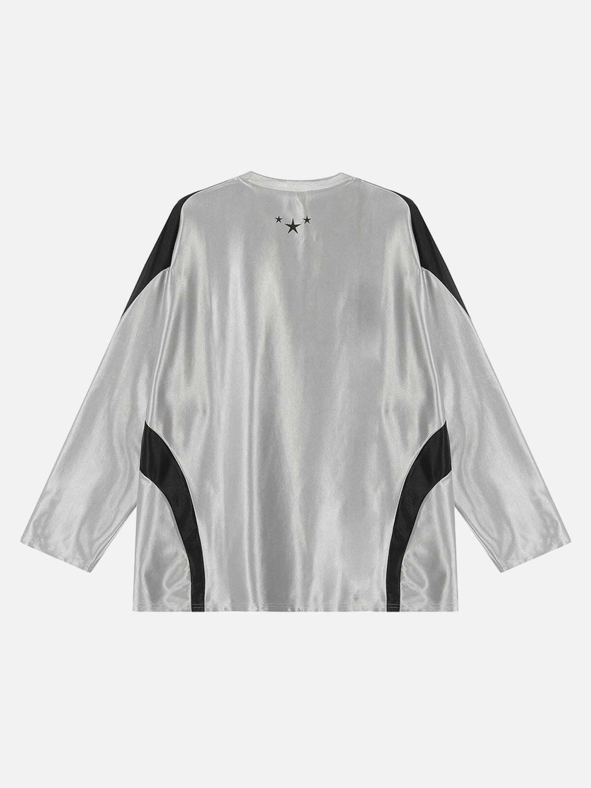 Stylish Concert Outfit: American Retro Patchwork Print Long-sleeved T-shirt