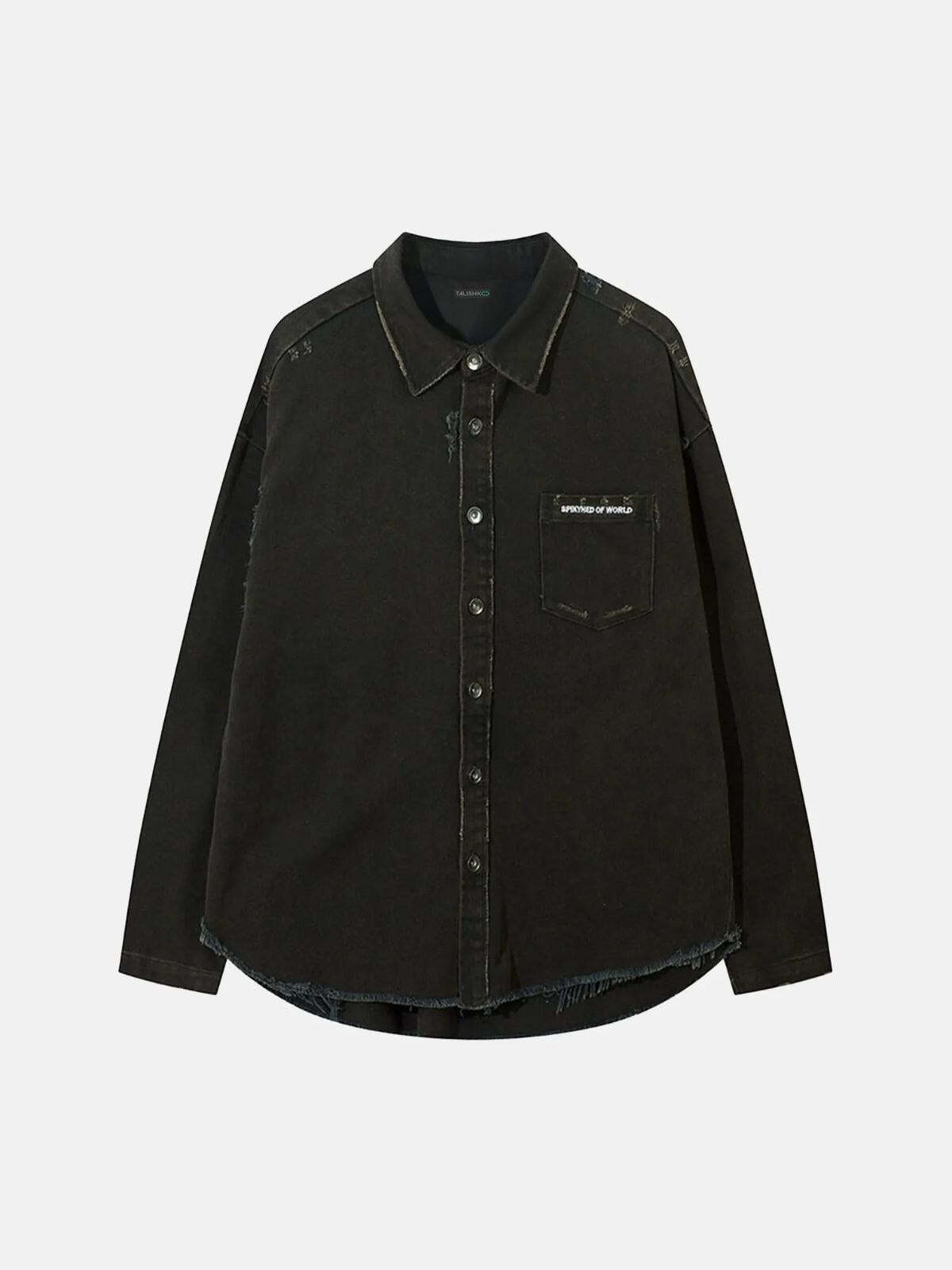 Concert Outfit American Retro Raw Edge Cross Long Sleeve Shirt – Concert Outfit