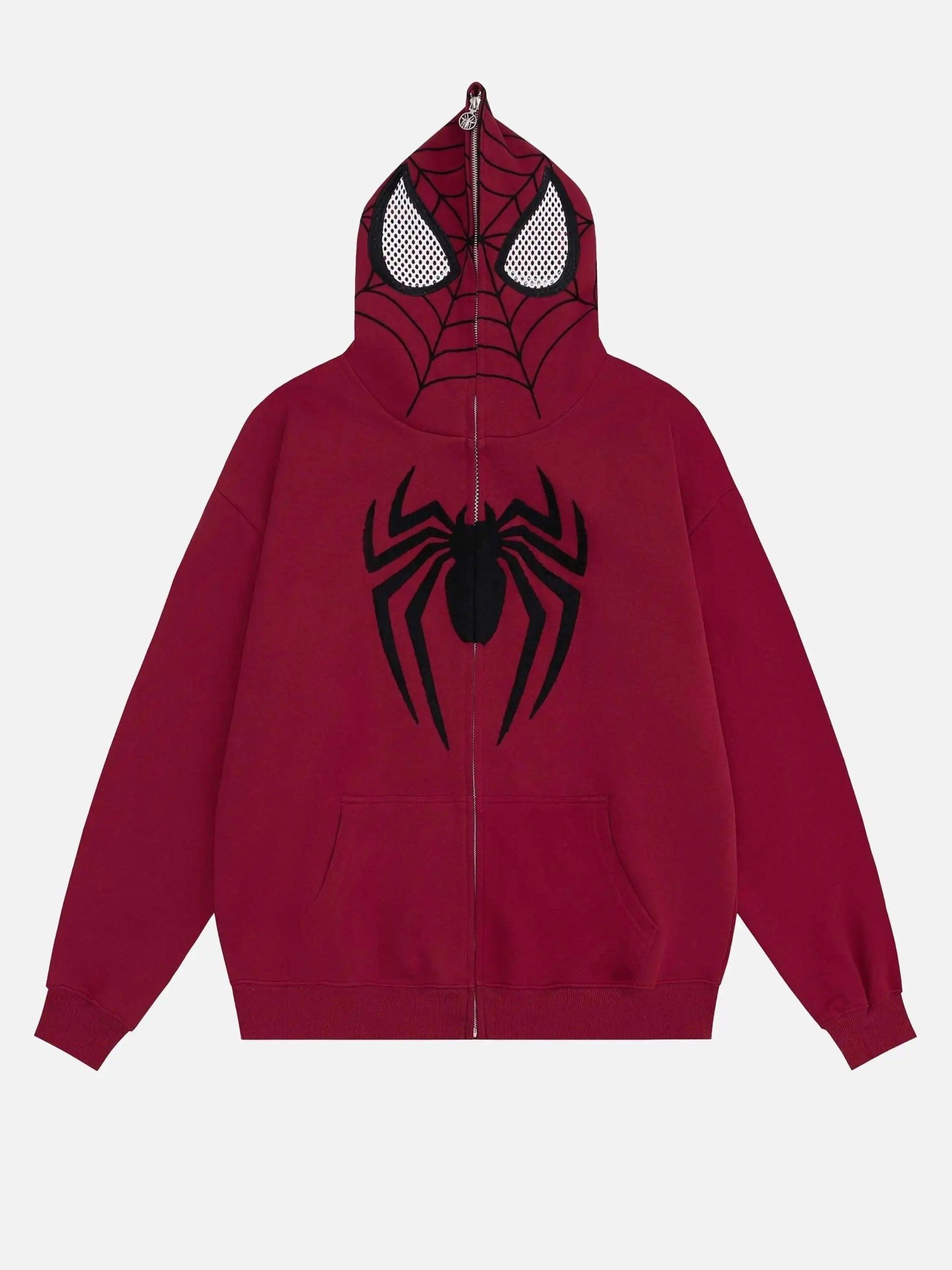 Embrace your inner hero with a hoodie that weaves streetwear fashion and bold design into one striking piece. This eye-catching red hoodie features a bold black spider emblem and intricate web patterns that transform the hood into a mask of mystery. Perfect for those cool urban nights, its comfortable fit comes in sizes M, L, XL, and XXL, ensuring you find the perfect match for your style. Whether you’re hitting the streets or looking for outfit inspo for a casual day out, this hoodie is your go-to for a standout look. Slip it on and step out with confidence.