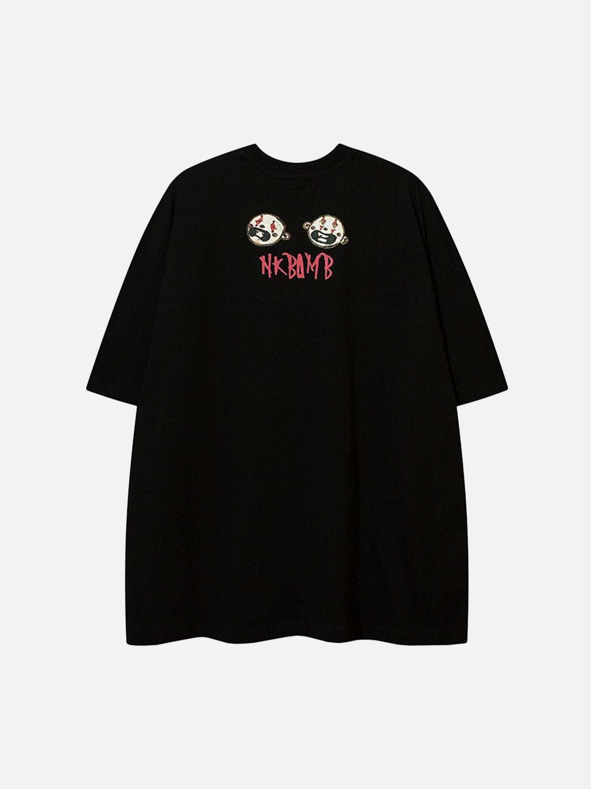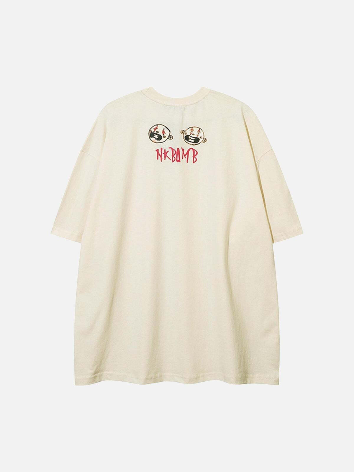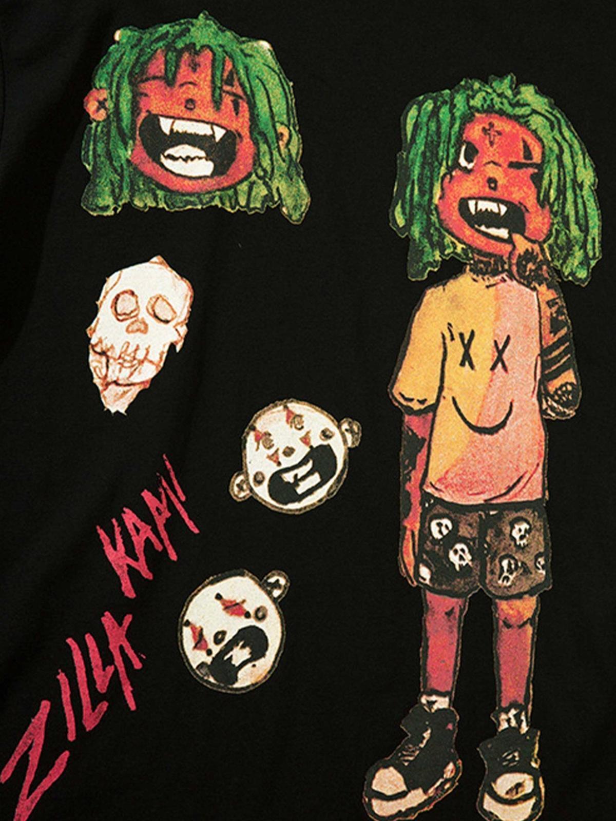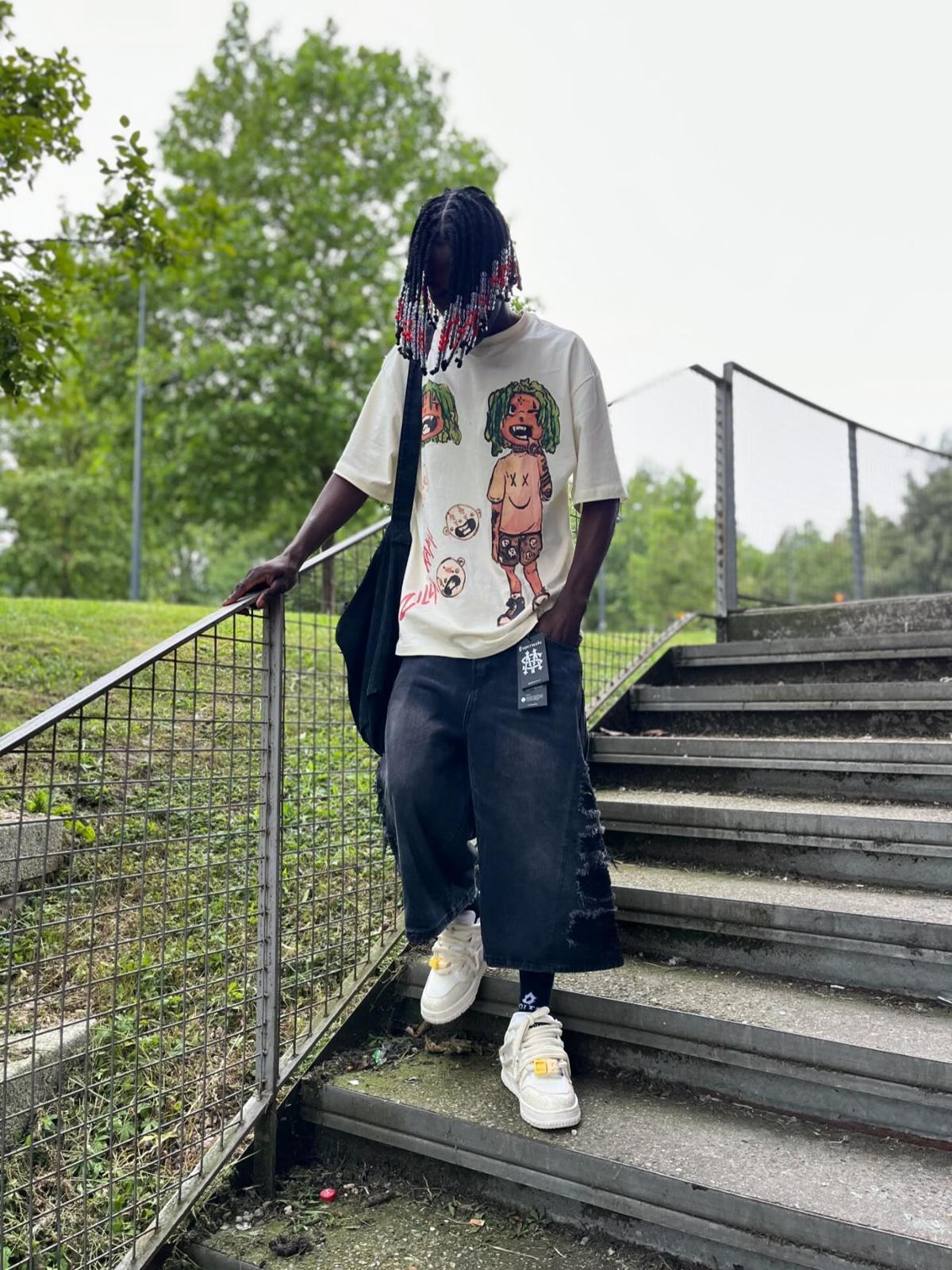 This tee screams urban rebellion with its bold, graphic artwork featuring vibrant characters and edgy elements that redefine streetwear cool. The rich black canvas serves as the perfect backdrop, amplifying the impact of the vivid greens and reds while showcasing your fearless summer style. Available in a relaxed fit that flows effortlessly, it’s designed for those who embrace comfort without compromising on edge, whether in classic black or versatile beige. Pair it with your favorite jeans or shorts for a look that’s as daring as you are. Available in sizes S to XL, it’s time to redefine your summer fashion game.