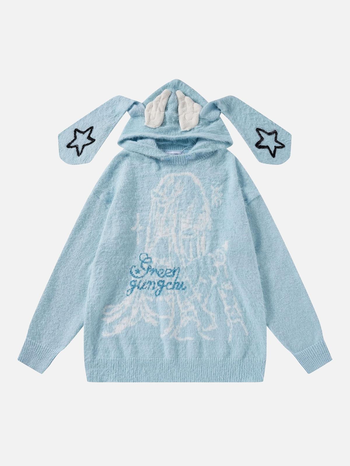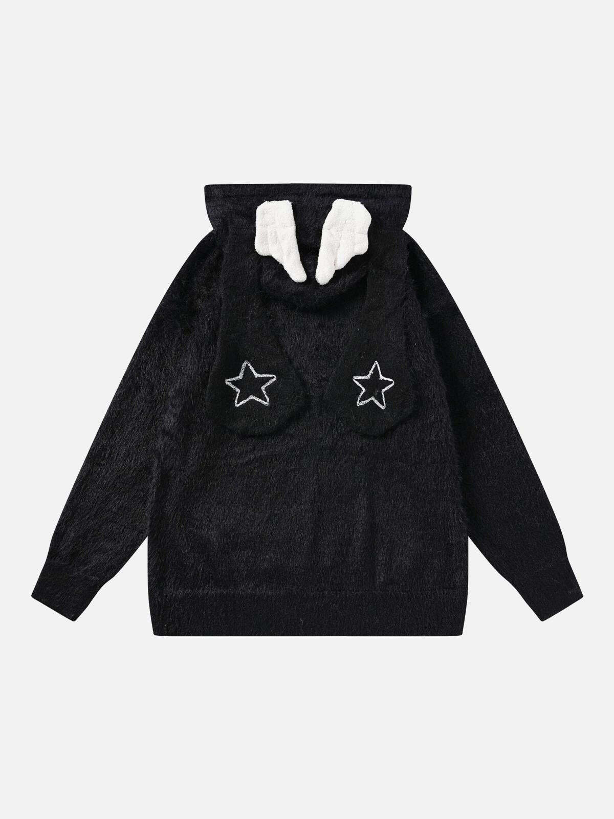 Break boundaries with this audacious hoodie that merges playful design and streetwear fashion. The black hue serves as a bold canvas for the striking white graphic that flows across the front, creating a visual symphony that’s both chaotic and captivating. Unique ear-like extensions adorned with embroidered stars on the hood add an unexpected twist, infusing a playful vibe into your look. Crafted for those who embrace the unexpected, this hoodie offers a relaxed fit that’s perfect for layering over a tee or under a jacket. Available in sizes S to XL, it ensures everyone can find their perfect fit. Whether you’re stepping out in white sneakers or layering with blues, this piece is a canvas for your y2k outfit ideas. Dive into this urban adventure and redefine your style game today.