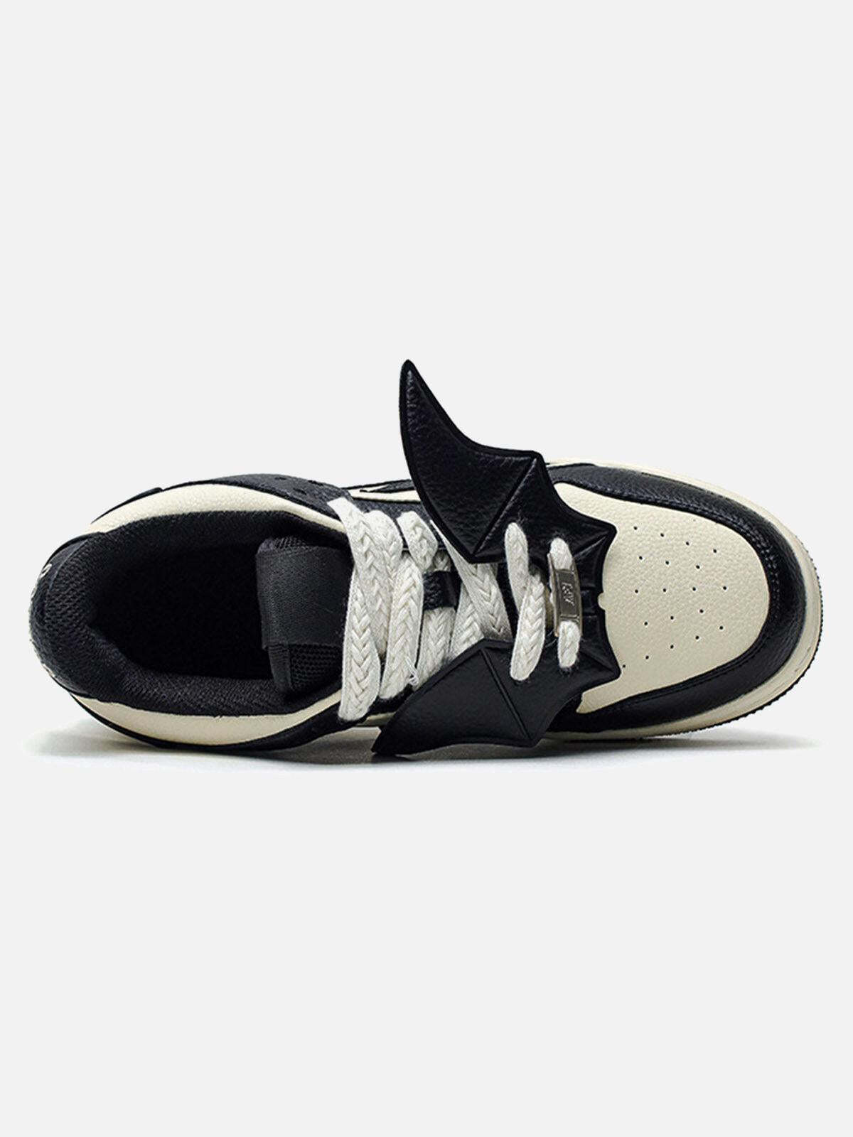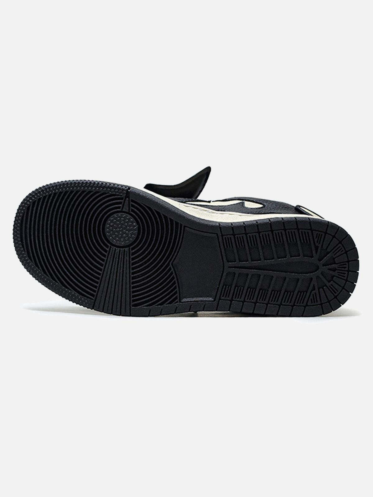 Crafted from premium leather and suede, Black & White Contrast Color Skate Shoes blend durability with street-savvy style. Chunky soles deliver superior comfort and support, while reflective accents boost visibility. Featuring a zipper closure and distinctive off-white industrial belt detail, these shoes redefine urban cool.