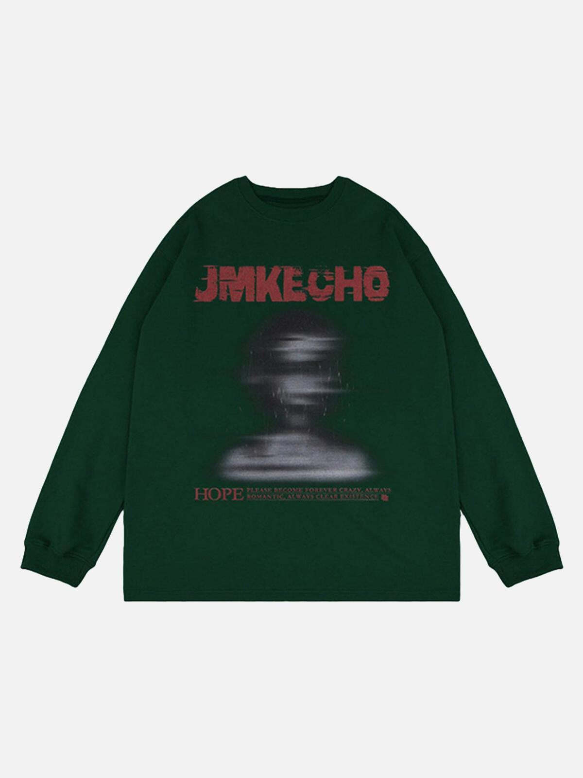 Break the mold with this bold long-sleeve tee, where urban edge meets artistic flair. The striking gray canvas showcases a blurred, mysterious graphic and bold typography that speaks volumes without saying a word. Crafted for a relaxed fit, it’s as comfortable as it is eye-catching, available in sizes M through 2XL to suit your streetwear vibe. Whether you’re rocking it in classic gray or mixing it up with green, white, or black, this piece effortlessly complements your y2k outfit inspo. Dive into streetwear fashion and let this tee become your new go-to.