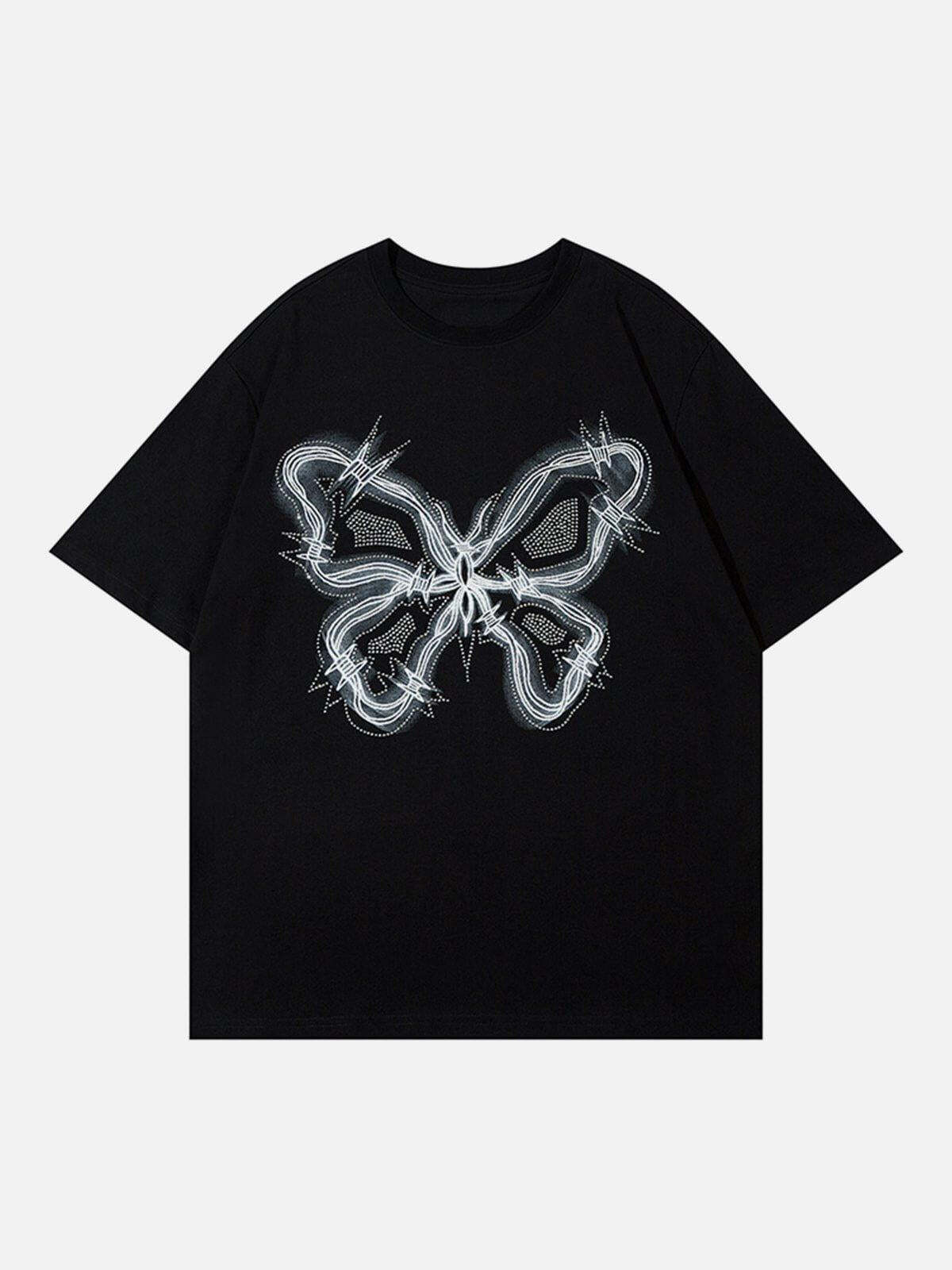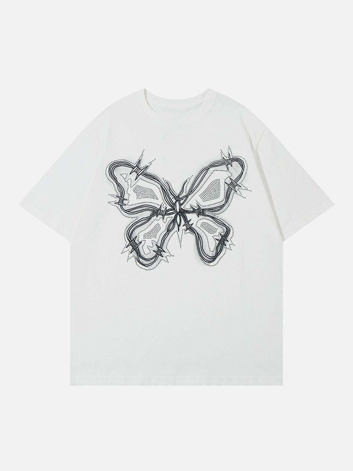 This oversized tee redefines summer fashion with a striking barbed wire butterfly design, perfectly contrasting against its bold pink backdrop. Crafted for those who embrace urban style, its soft texture and relaxed fit make it an essential for every summer outfit. Available in a spectrum of pink, white, and black, and in sizes ranging from S to XL, this piece is a versatile canvas for your streetwear expression. Pair it with distressed jeans or layer it under a sleek jacket—whatever your style, it’s ready to elevate your look. Embrace the season and make it yours today.