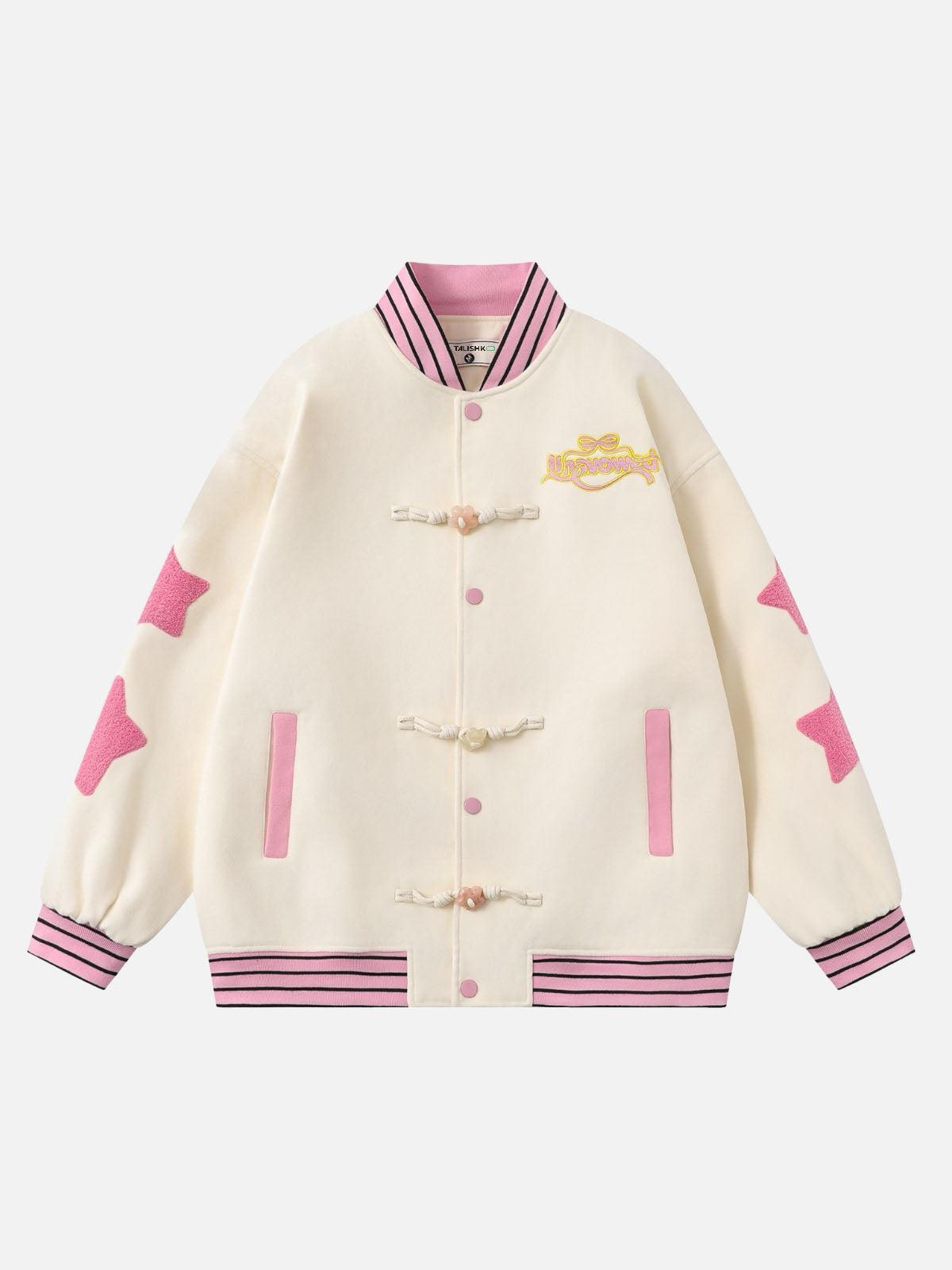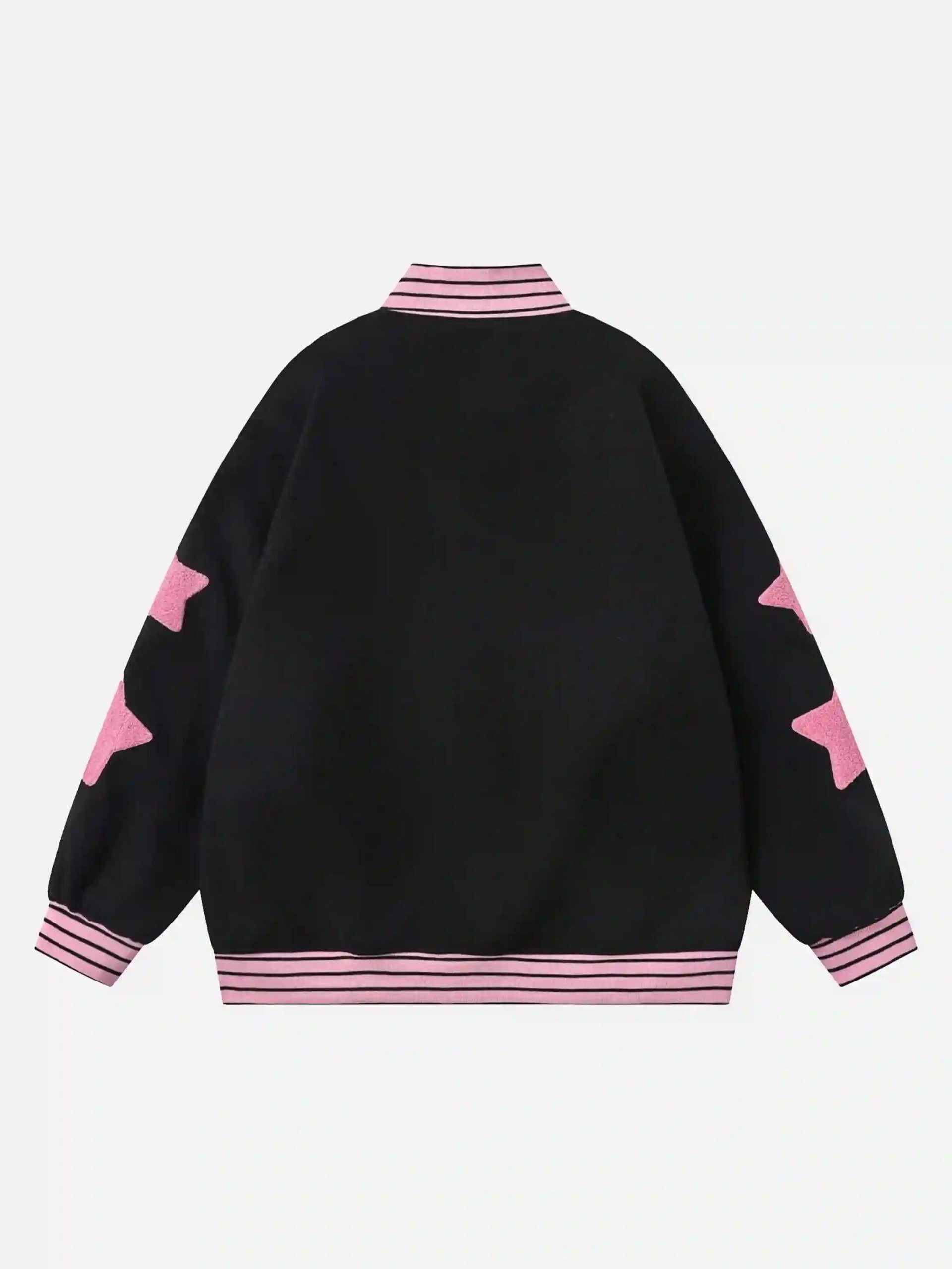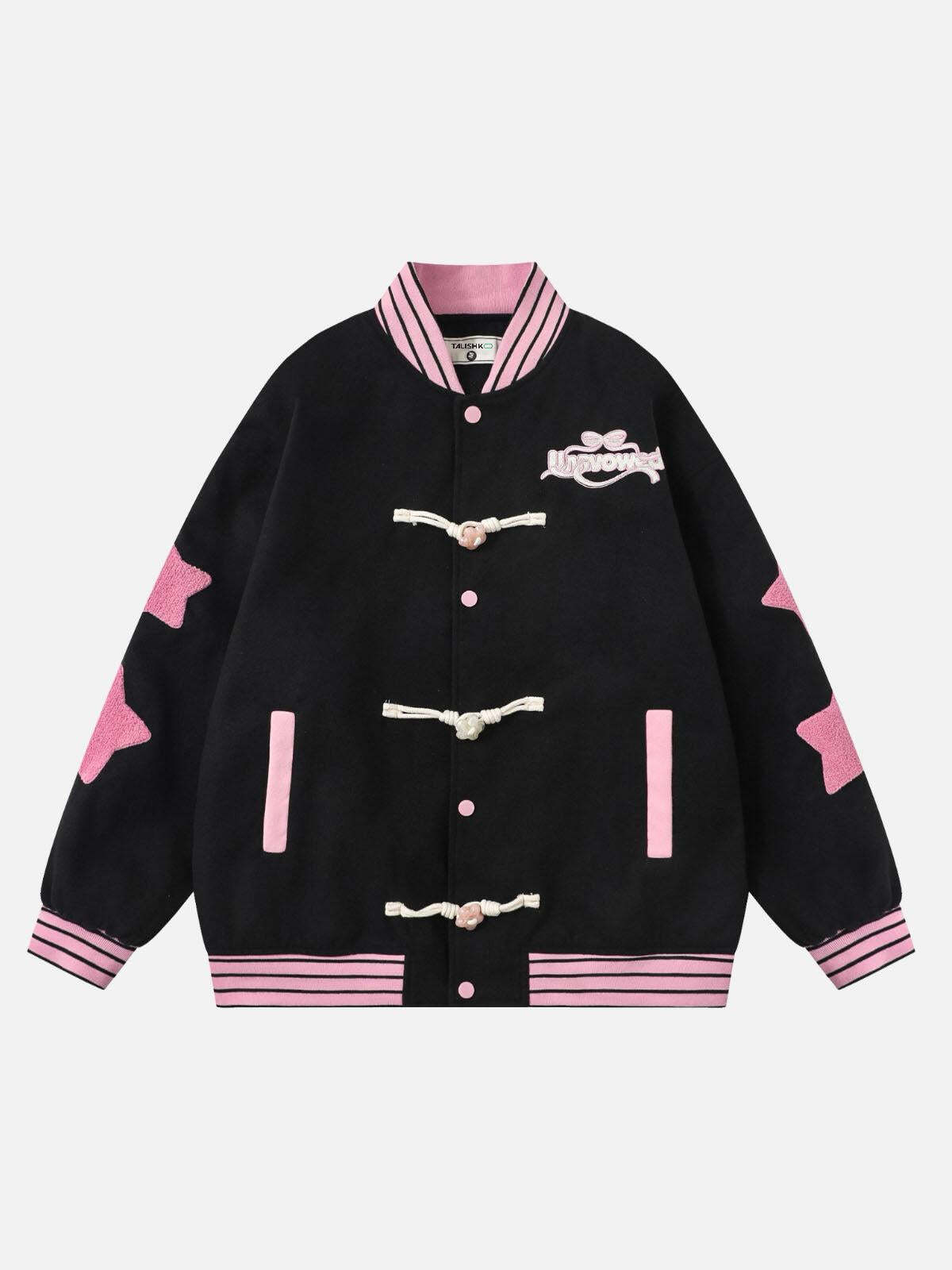 Concert Outfit Buttoned Star Embroidered Baseball Jacket