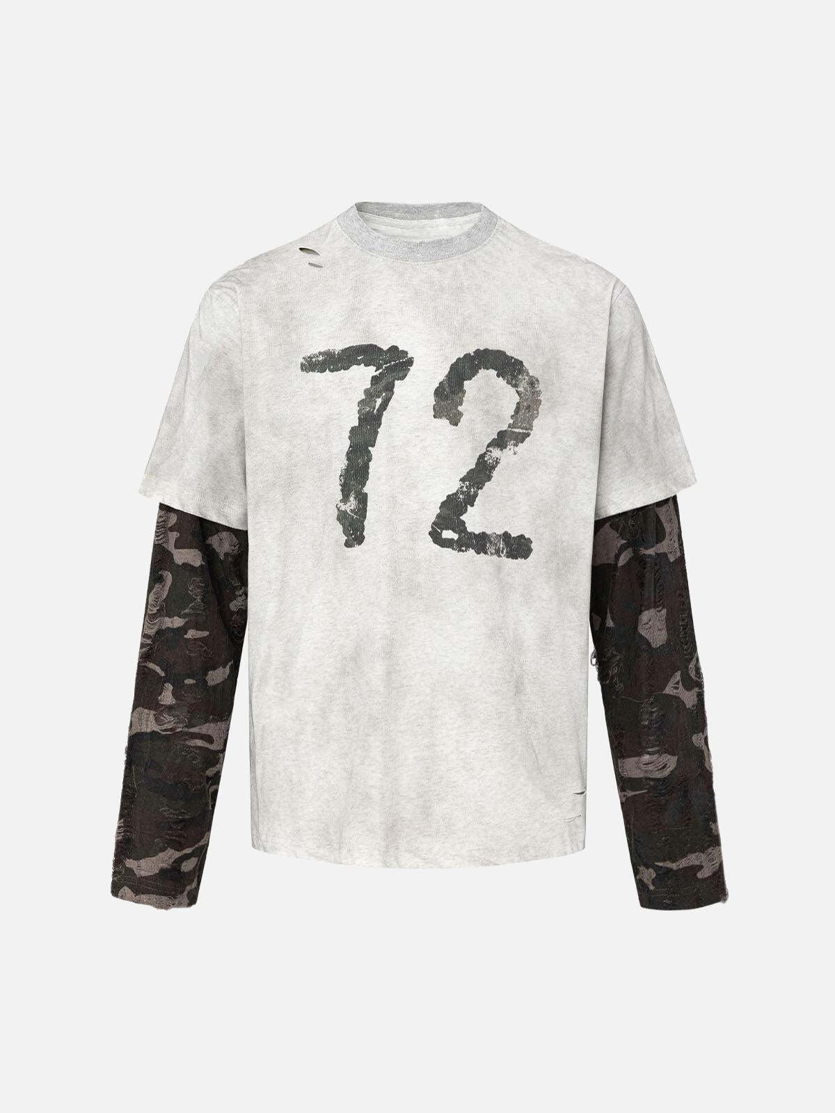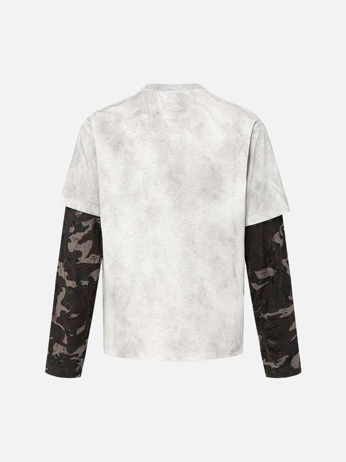 Concert Outfit Camouflage Faux Two-piece Jersey Long Sleeve T-shirt – Concert Outfit