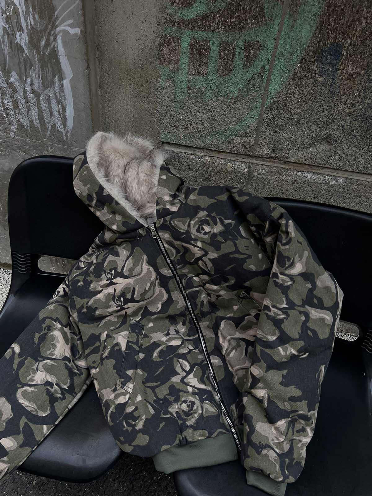 Concert Outfit Camouflage Fur Hooded Jacket – Concert Outfit