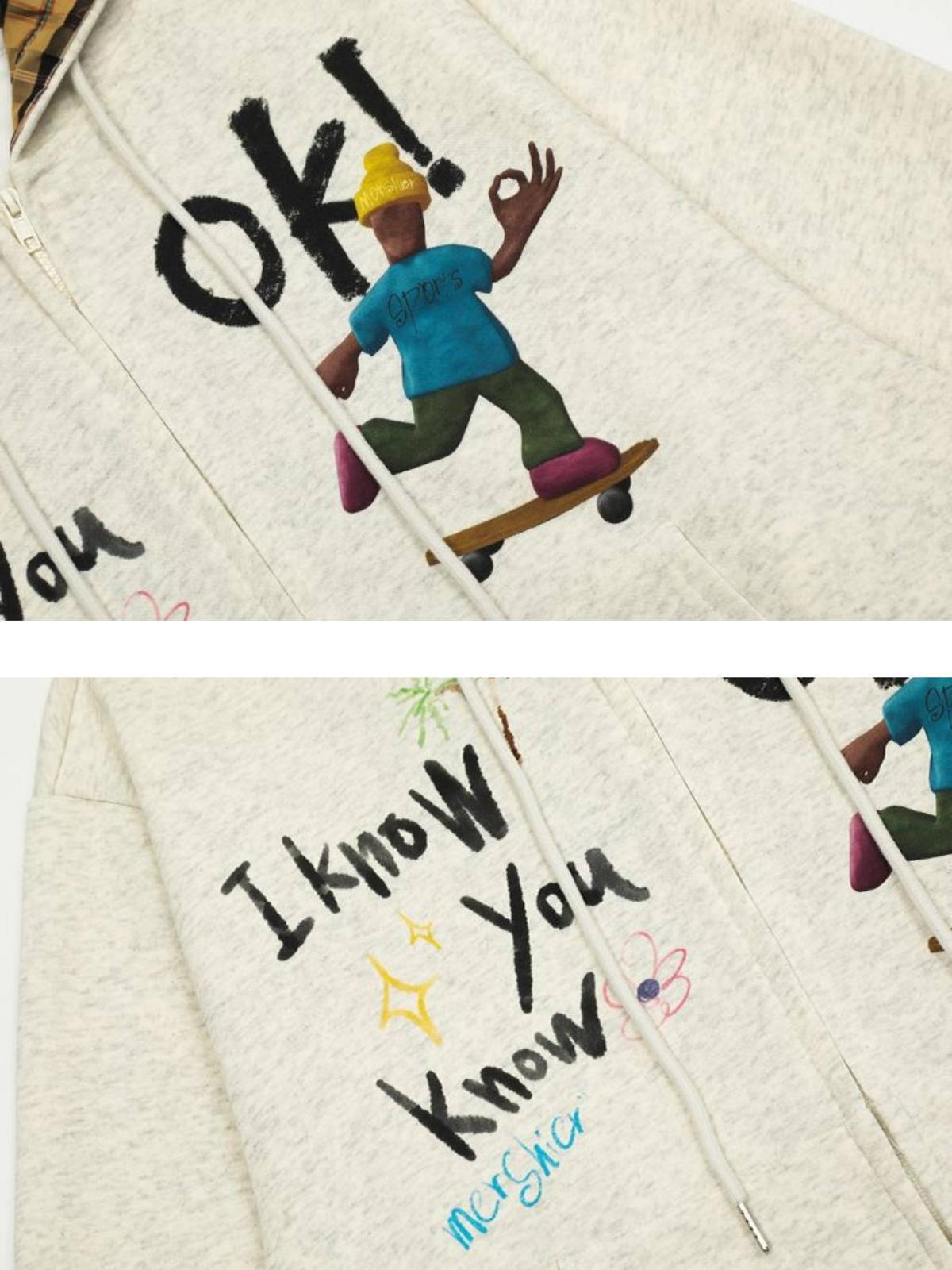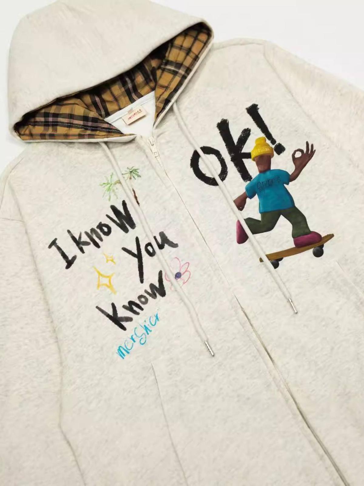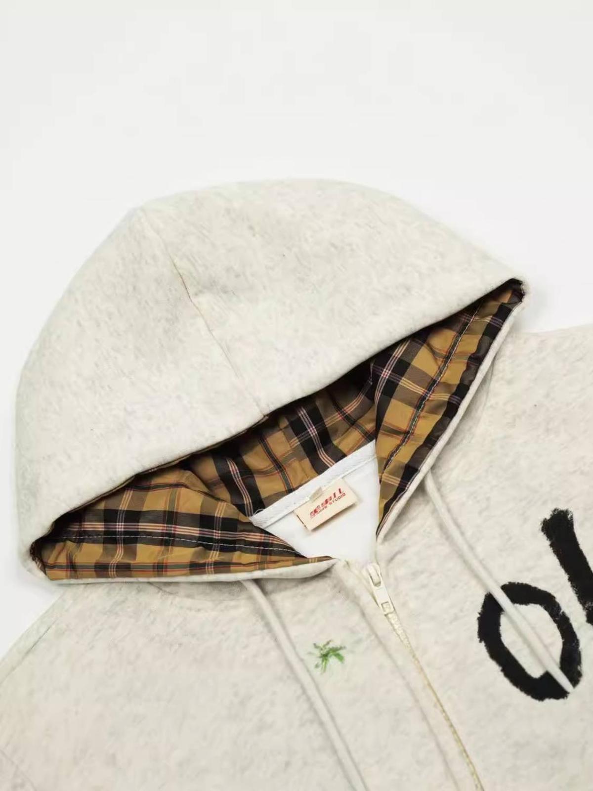 Break the mold with this hoodie that screams urban edge and playful vibes. The light gray canvas sets the stage for bold, street-style graphics that capture the essence of y2k outfits, while a surprise interior plaid lining peeks out for a touch of rebellious flair. Available in M, L, and XL, this hoodie offers a relaxed fit perfect for layering over your favorite tees, making it a versatile staple for any streetwear fashion enthusiast. Whether you’re hitting the skate park or just kicking back, this piece adds a dose of creativity and confidence to your outfit ideas. Slip it on and let your style do the talking.