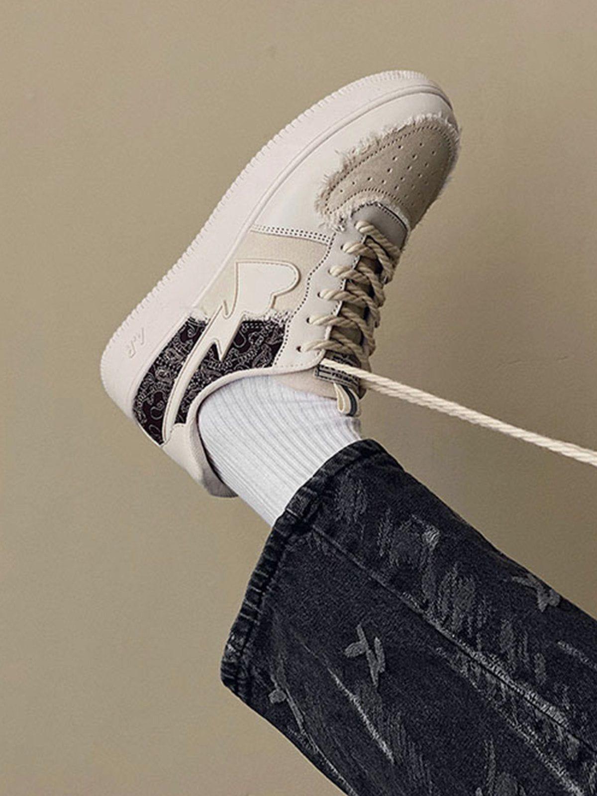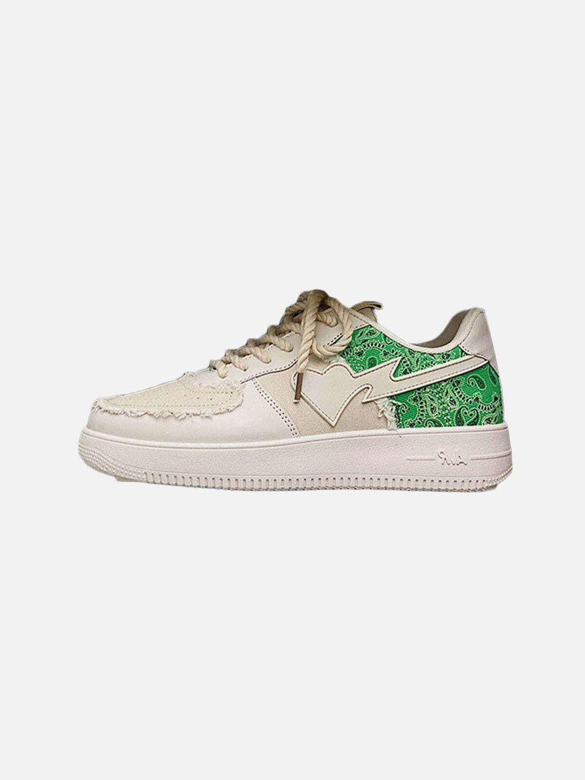 Turn heads with these sneakers that fuse edgy design with vibrant urban flair. The striking contrast of textured green paisley against a sleek beige backdrop brings a modern twist to classic streetwear vibes. Available in bold shades of green, gray, and brown, these kicks offer a perfect fit in sizes 39 through 44, ensuring comfort without compromising style. The rugged yet refined edges give your outfit ideas a fresh spin, making these sneakers a versatile choice for any ensemble. Lace up and let your footwear do the talking.