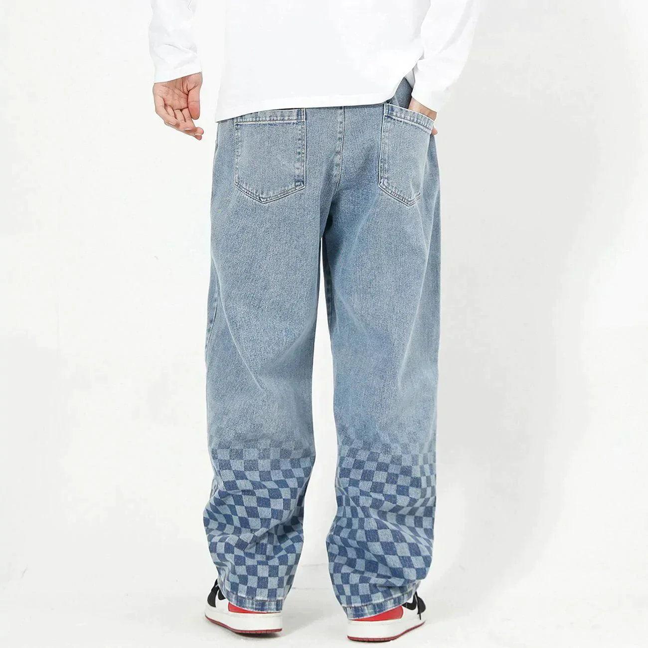 Break barriers with these bold, checkerboard gradient jeans that redefine streetwear fashion. The unique blend of blue hues paired with a relaxed, oversized fit makes them perfect for crafting your own y2k outfits. Available in versatile sizes like S, M, and L, these jeans promise comfort and style for every urban explorer. Whether you’re hitting the city streets in black kicks or layering with a cozy top, these jeans deliver endless outfit ideas. Turn heads and make these a staple in your wardrobe today.
