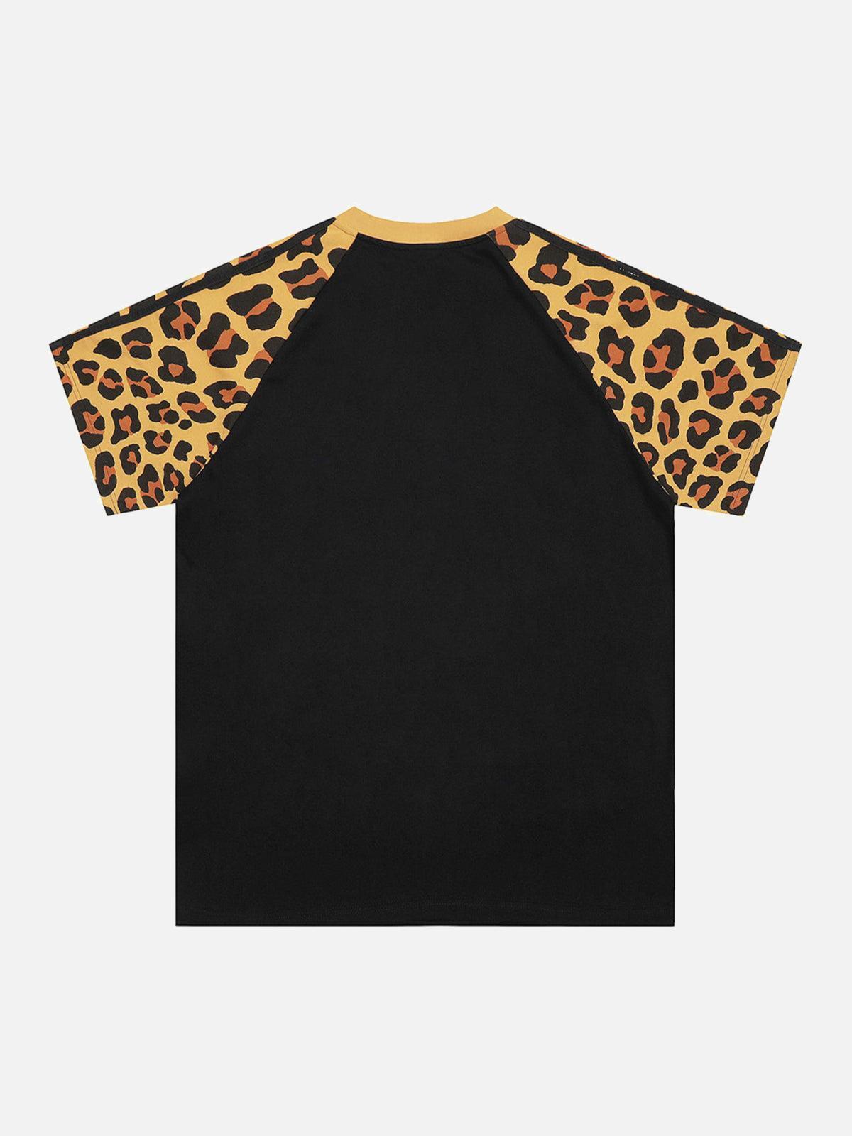 Take the wild side with this bold tee, where urban edge meets untamed flair. The striking leopard print sleeves contrast perfectly with the sleek black body, while the eye-catching flame and text graphics add a rebellious flair. Crafted for those who push boundaries, its relaxed fit promises comfort without compromising on style, making it an essential in your summer fashion rotation. Whether you’re rocking it in medium, large, extra-large, or double XL, this piece adapts effortlessly to your vibe. Pair it with your favorite streetwear bottoms and step into the city lights with undeniable confidence.