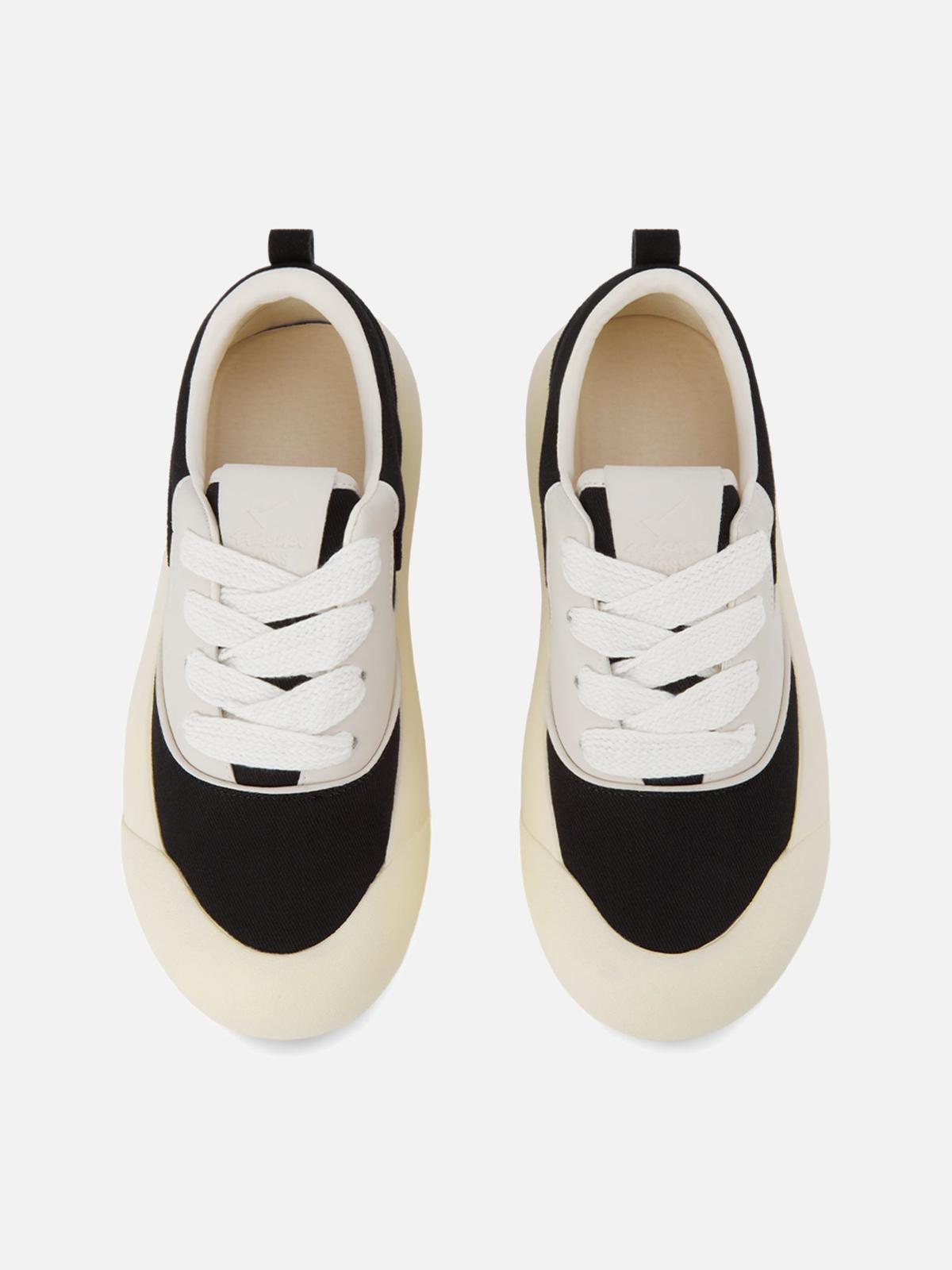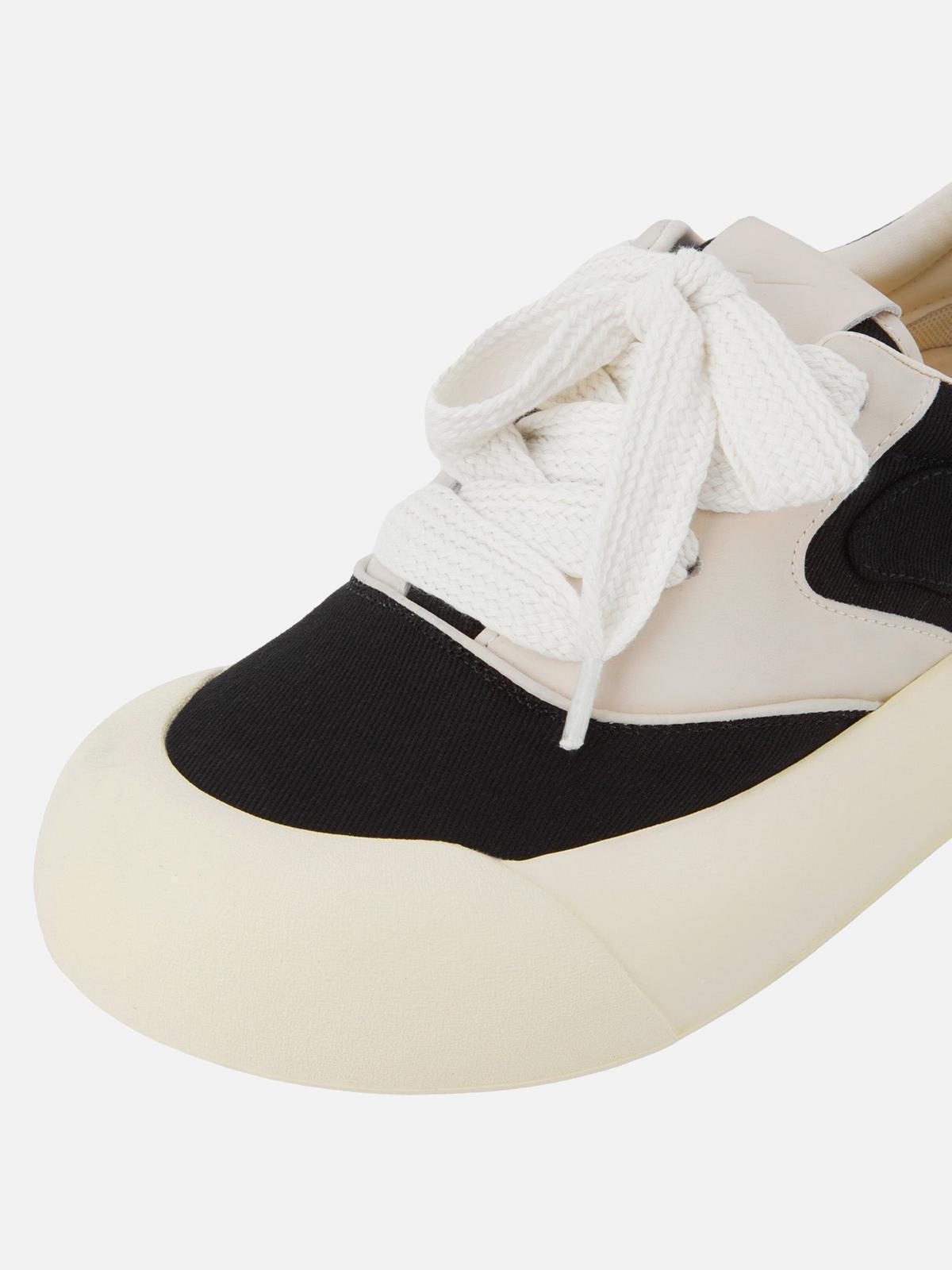 Chunky round-toe color-block rap sneakers in durable canvas offer bold style and comfort. Featuring a convenient slip-on design with elastic gore sides and an adjustable Velcro strap, these kicks are perfect for spring, summer, and fall. Ideal for casual outings, everyday wear, or travel, they ensure a secure fit and all-day comfort.