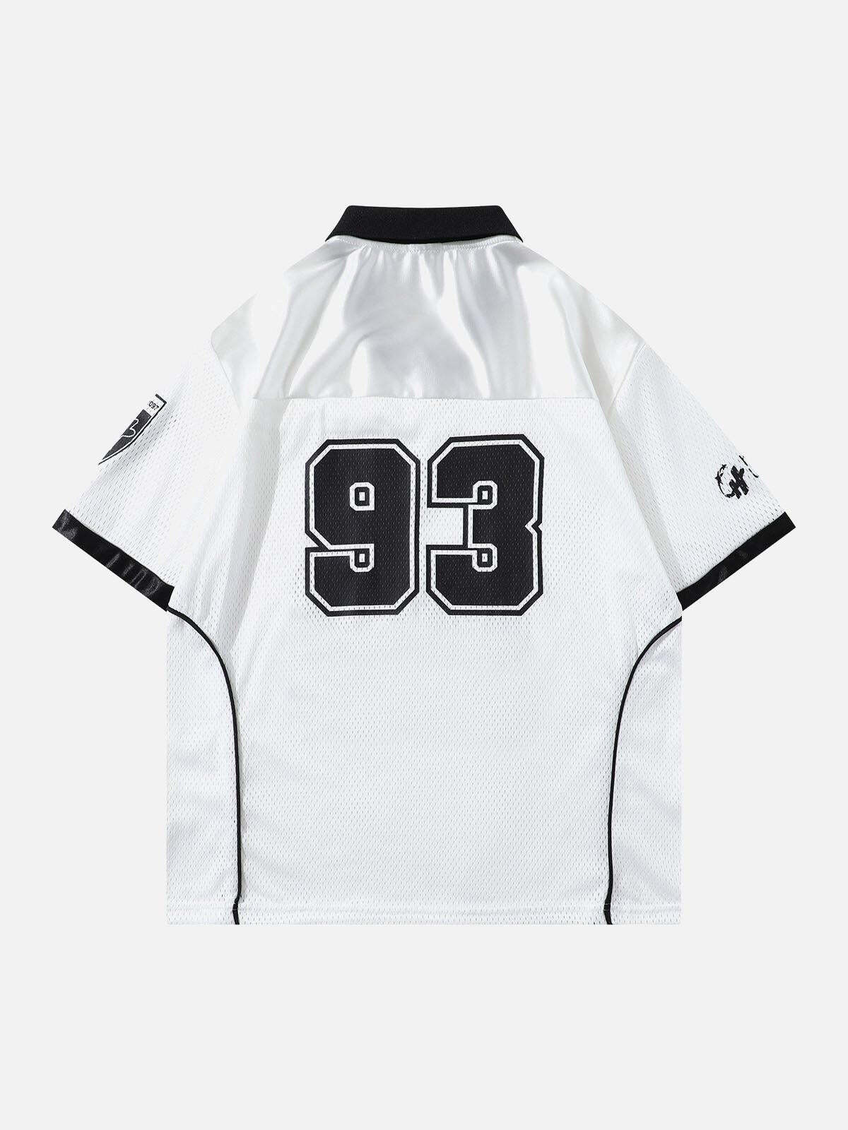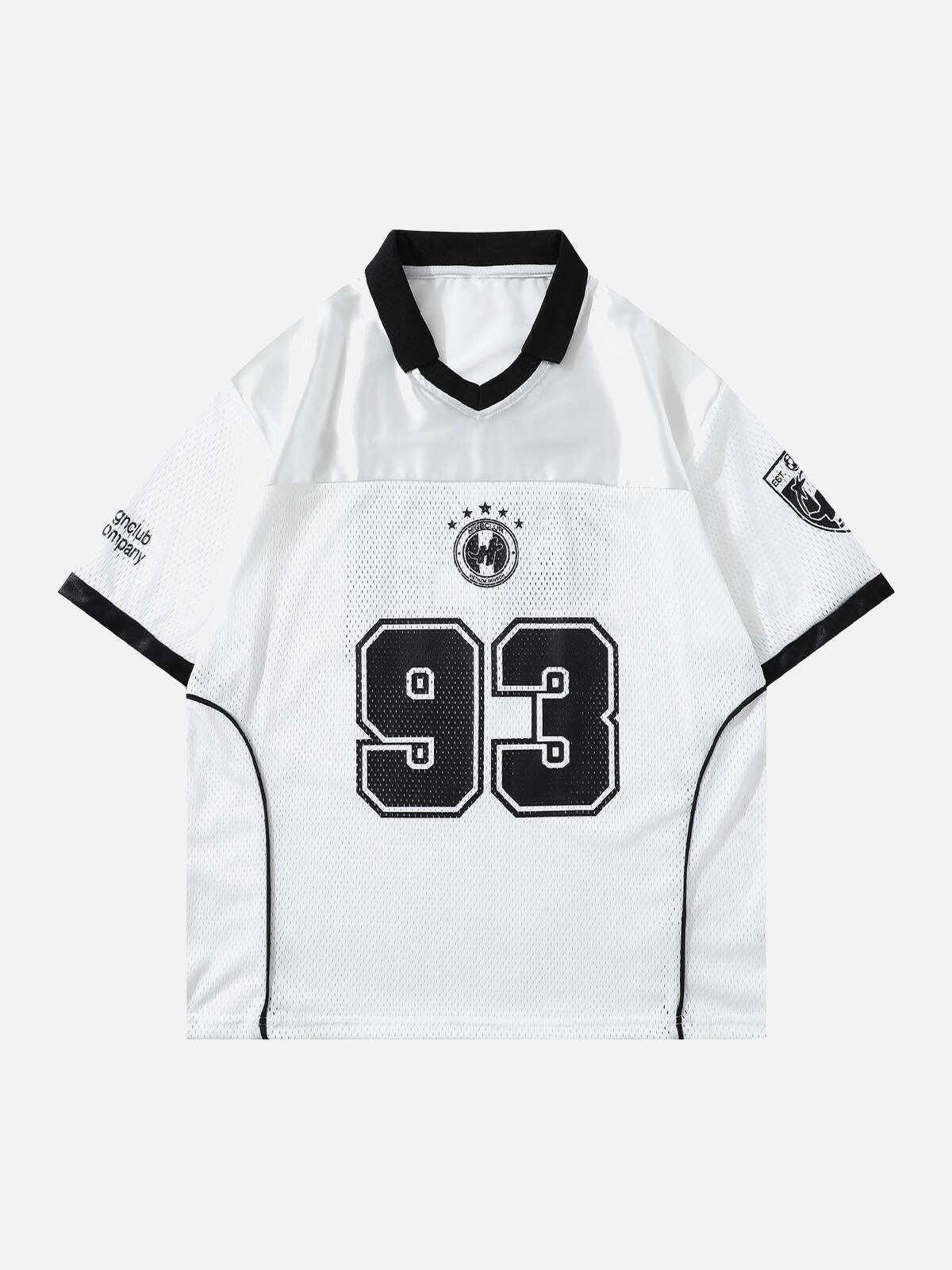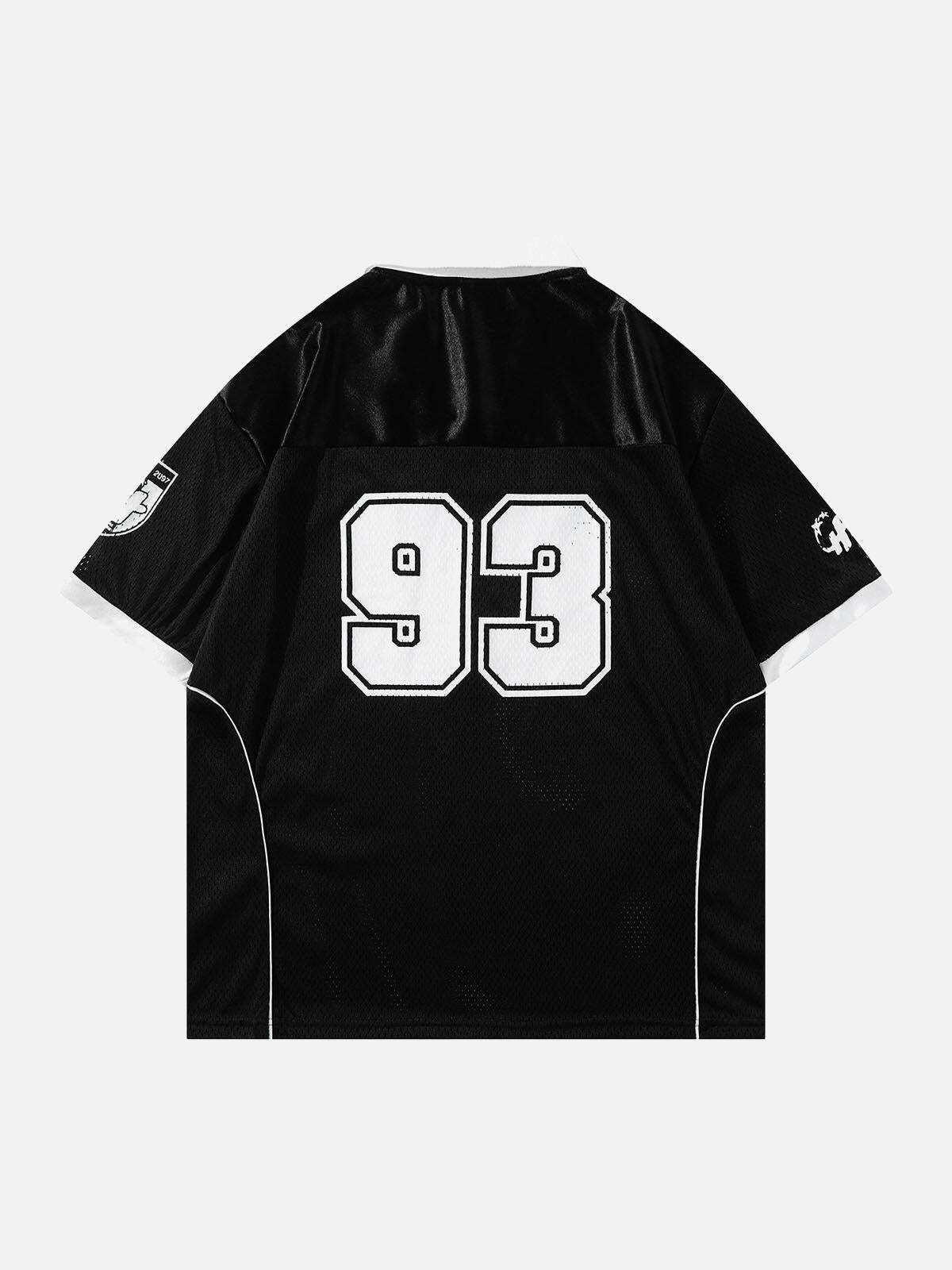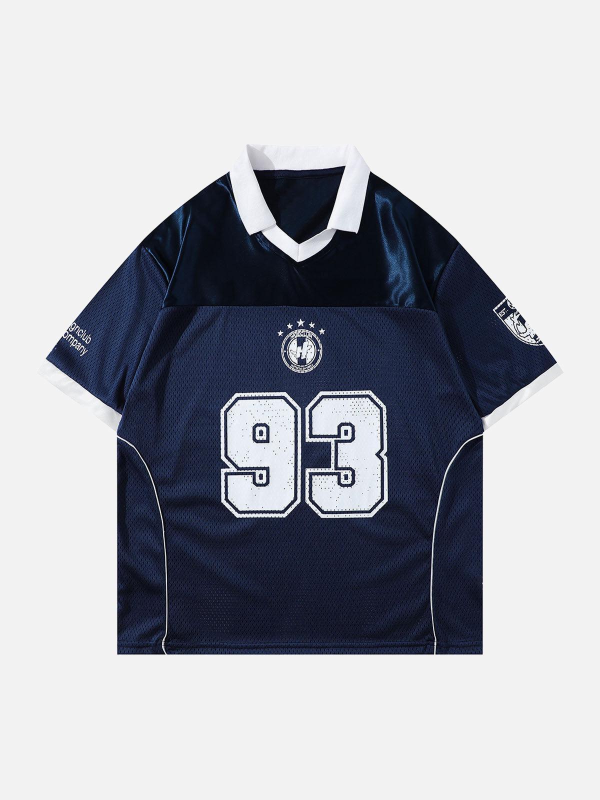 Break away from the ordinary with this striking jersey that blends classic athletic vibes with modern streetwear flair. The bold navy hue, accented by crisp white detailing and a commanding ’93’ emblazoned across the chest, makes this piece a standout in any summer outfit. The breathable mesh texture ensures comfort whether you’re on the move or chilling with friends, while the structured collar adds a touch of sophistication. Available in sizes M, L, and XL, this jersey promises a relaxed fit that pairs seamlessly with your favorite jeans or shorts. Elevate your summer fashion game and make every day feel like game day.