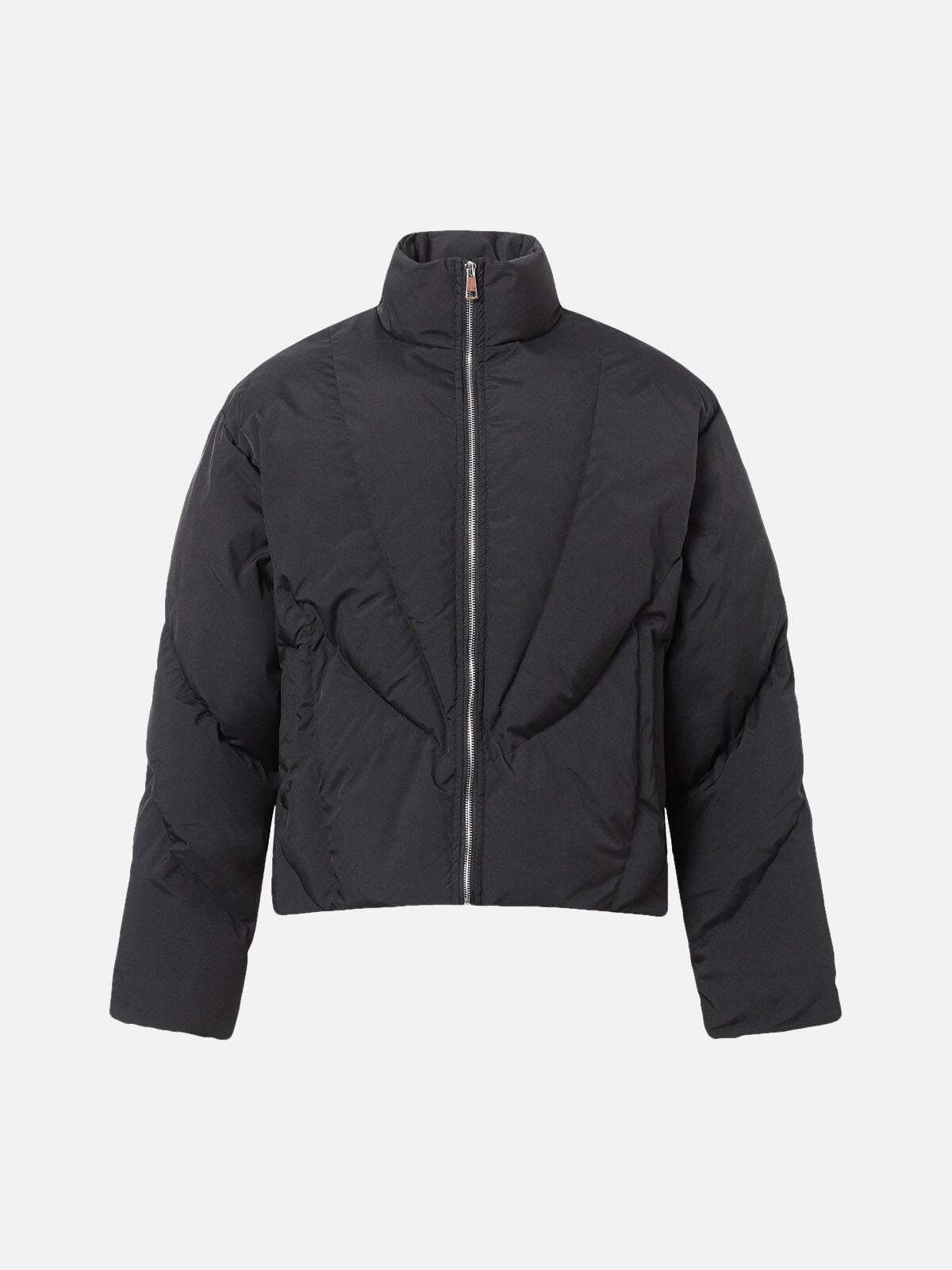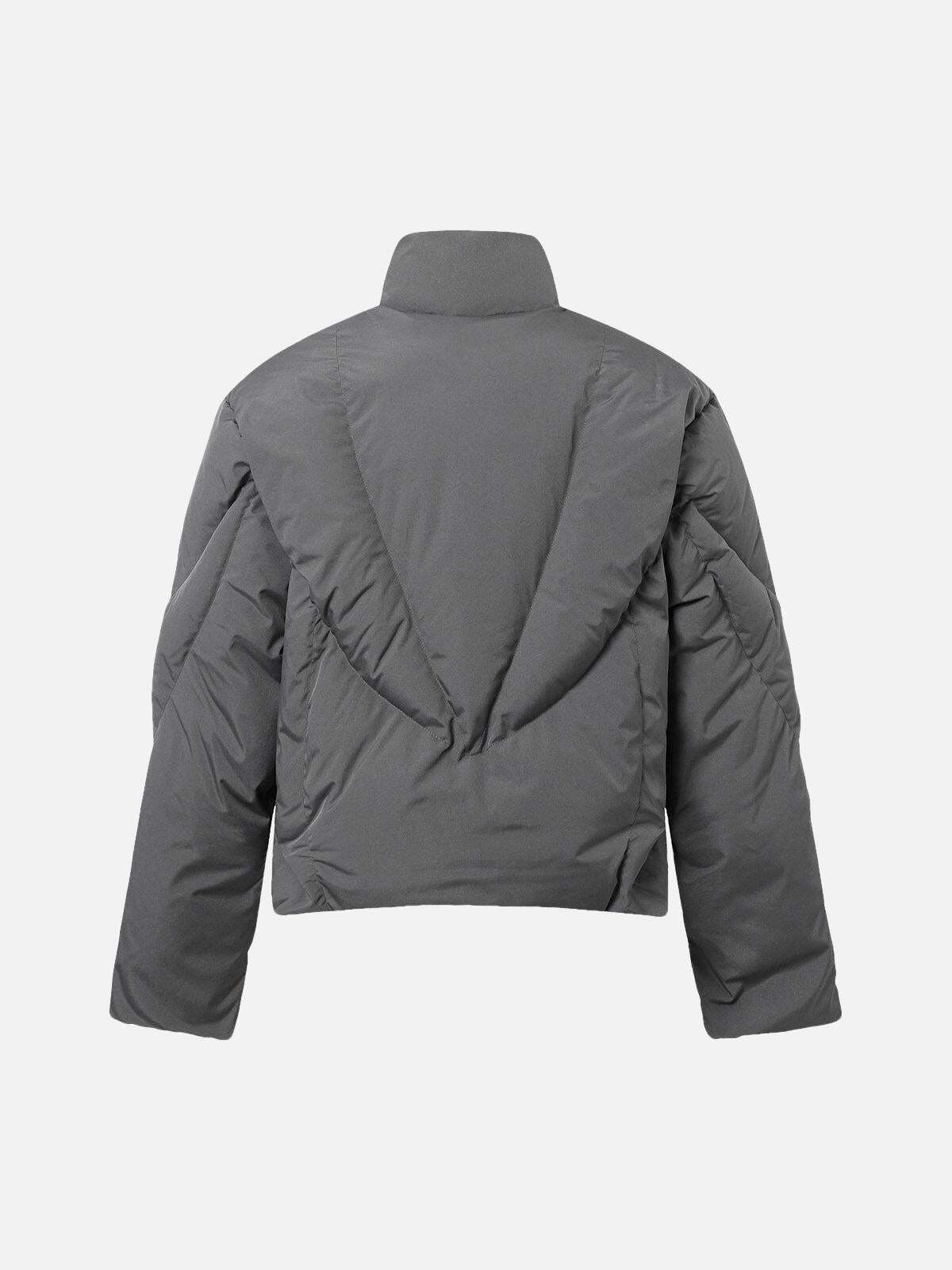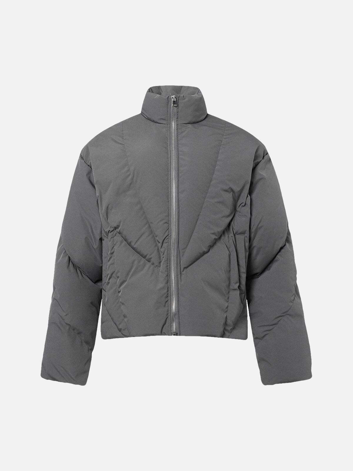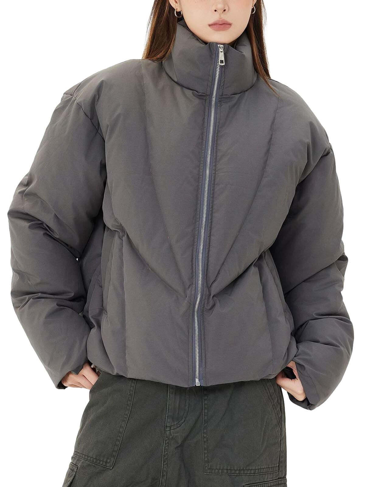 Stand out effortlessly with this sleek puffer that merges bold design with urban sophistication. Its angular quilted texture adds an edgy vibe, complementing the high-neck zip-up style that keeps you warm and stylish. Available in versatile gray and classic black, this jacket is designed for those who embrace streetwear fashion with confidence. Whether you’re layering it over a hoodie or pairing it with your favorite Y2K outfits, the medium to extra-large sizes ensure a perfect fit for every look. Step into the city and let this piece be your ultimate cold-weather companion.