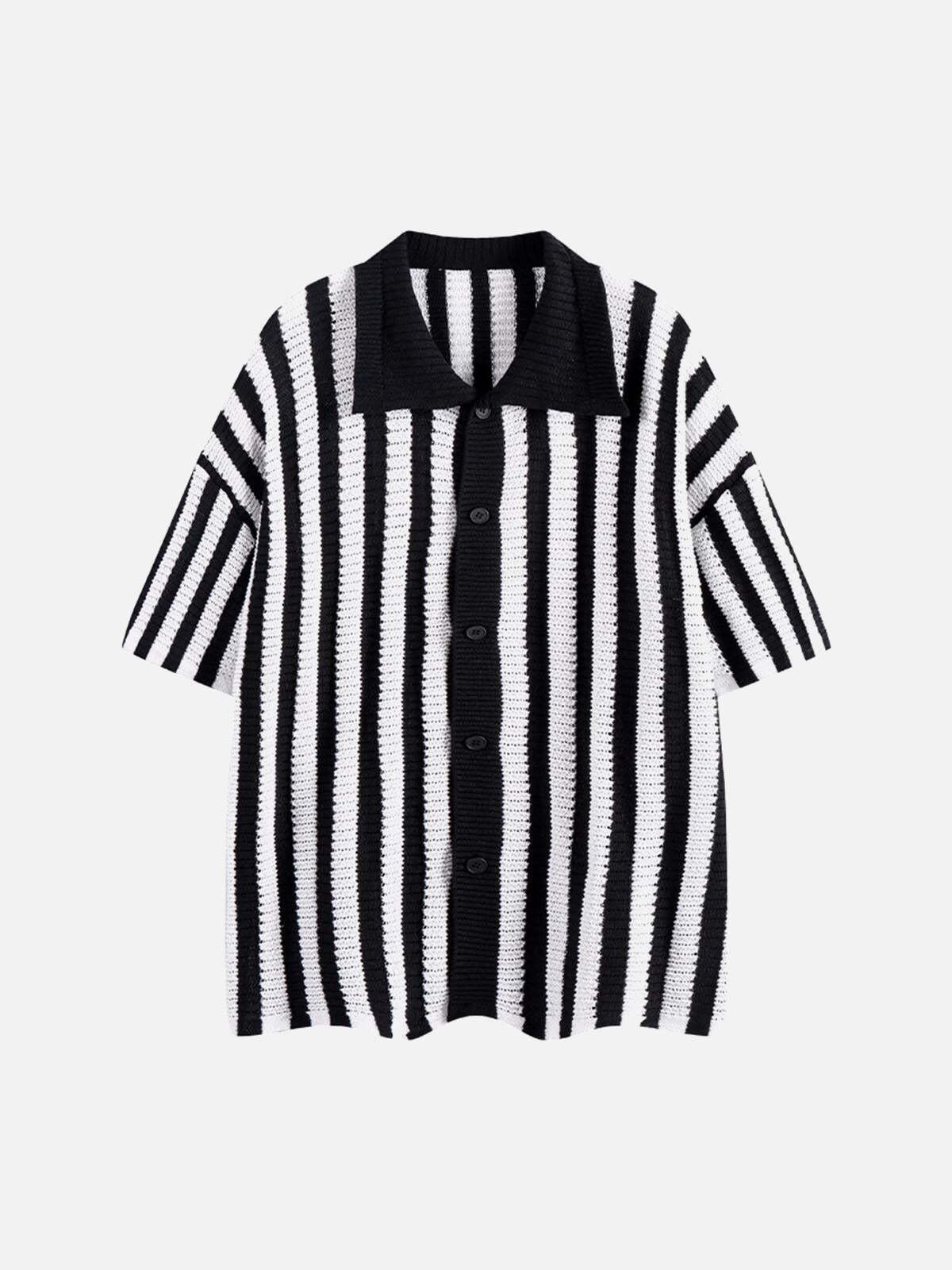Embrace the rhythm of urban life with this striped masterpiece, where sky blue meets ivory in a textured dance of bold vertical lines. The relaxed fit ensures comfort and style, making it an essential piece for your streetwear fashion lineup. Whether you’re rocking it solo or layering for those cooler nights, this shirt is designed to flow with your every move. Available in a spectrum of colors like red and black, and sizes from S to 2XL, it’s your canvas for limitless outfit ideas. Dive into the world of y2k outfits and let your style speak for itself.