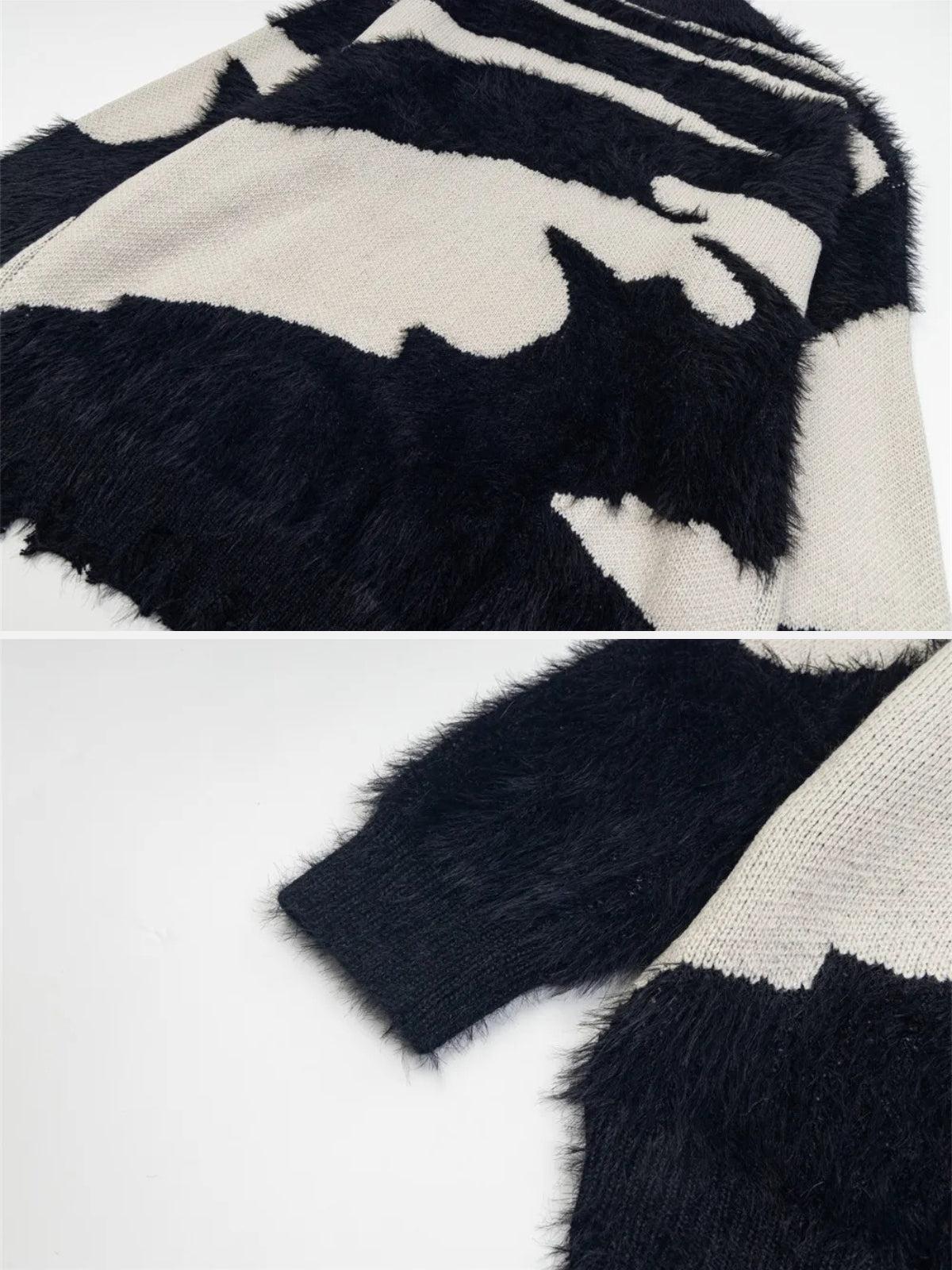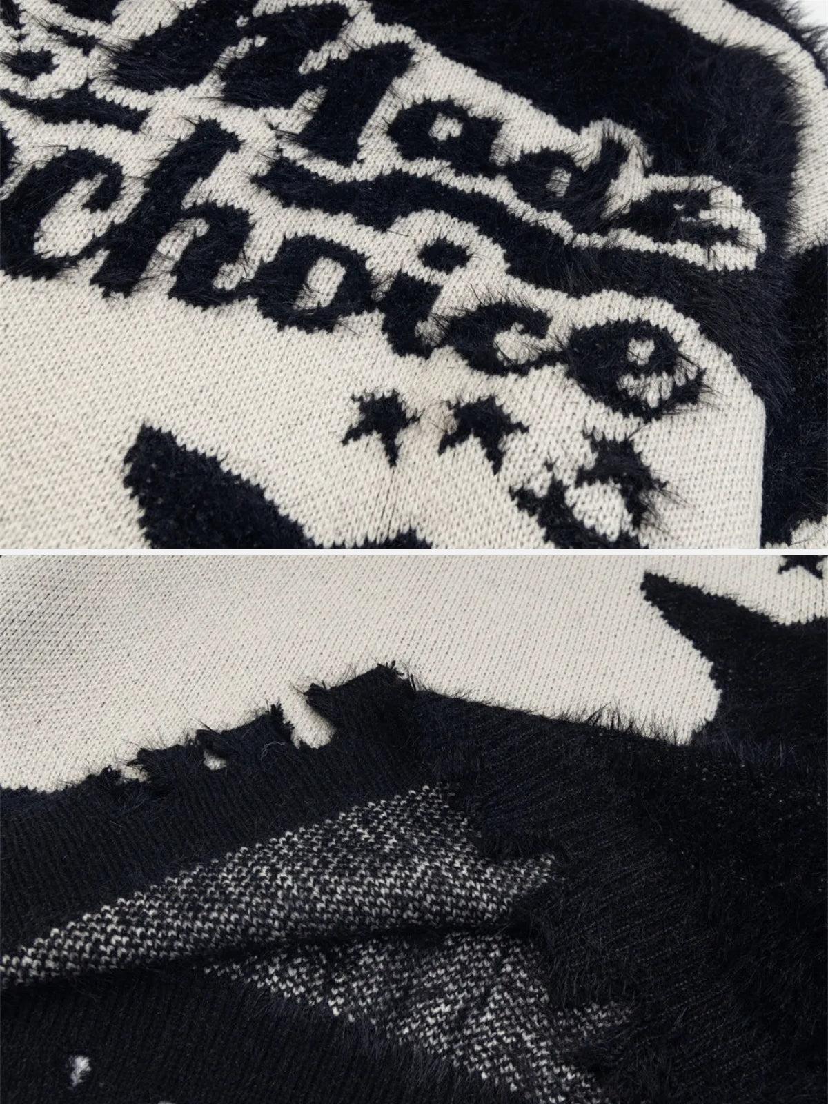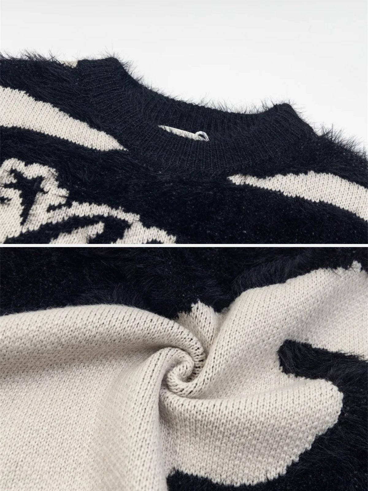 Dare to redefine your look with this striking black and cream sweater, where bold graphics collide with a textured, fuzzy finish for ultimate streetwear fashion. Available in versatile sizes from S to XL, this piece embraces an oversized fit that wraps you in comfort while making a statement. The edgy design and distressed hem add a touch of rebellion, perfect for layering over your favorite y2k outfits or pairing with sleek denim. Whether you choose the subtle brown or vibrant pink variations, the vibe remains effortlessly cool. Slip into this sweater and let your outfit ideas flow with urban flair.