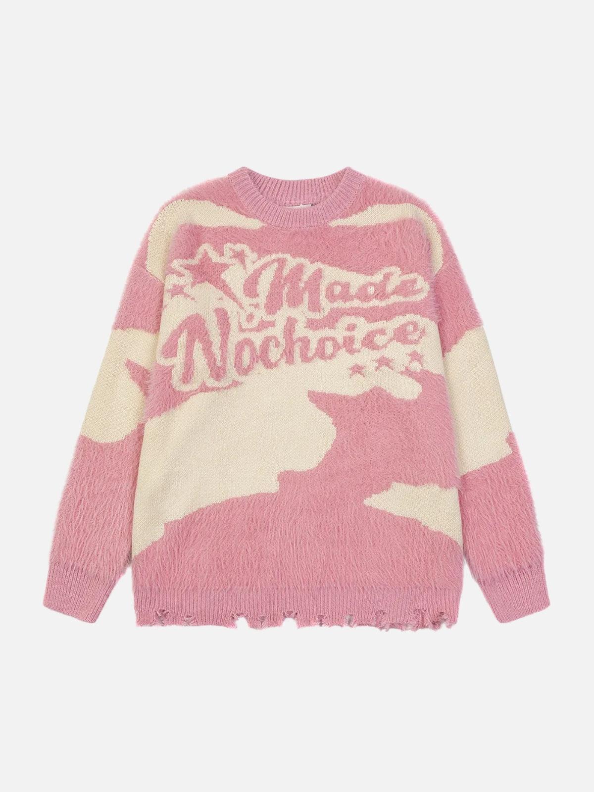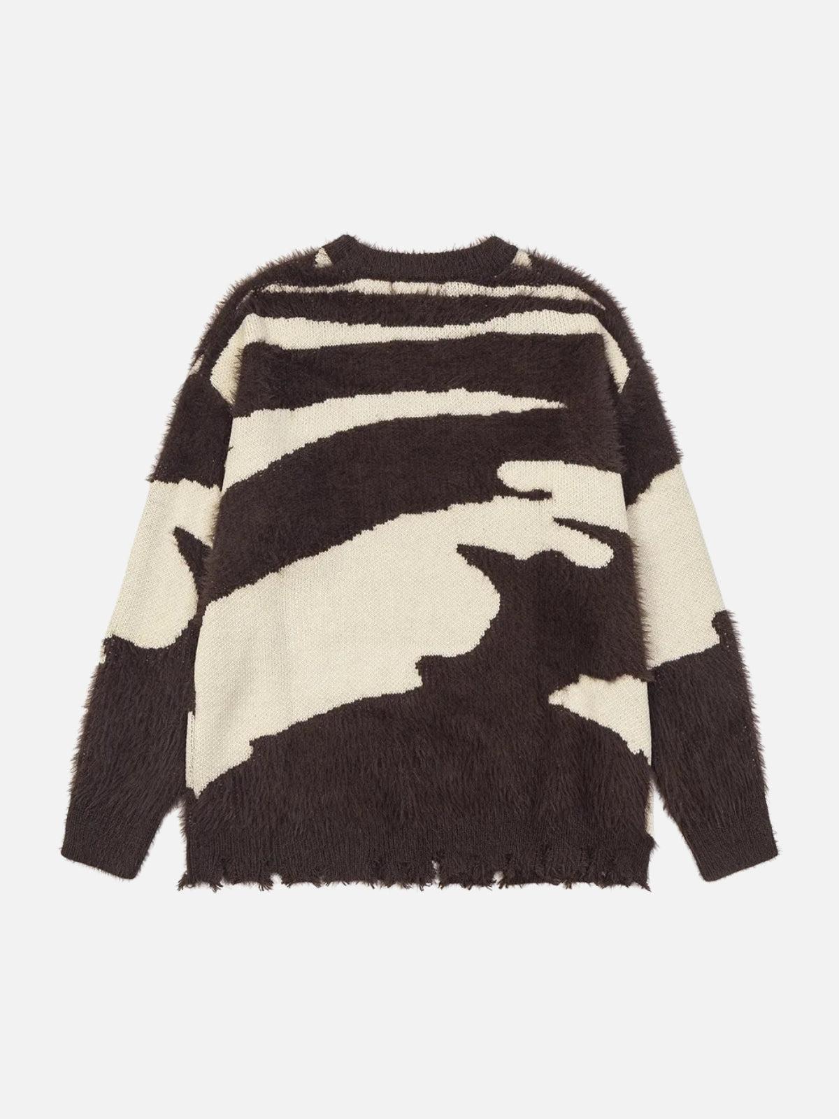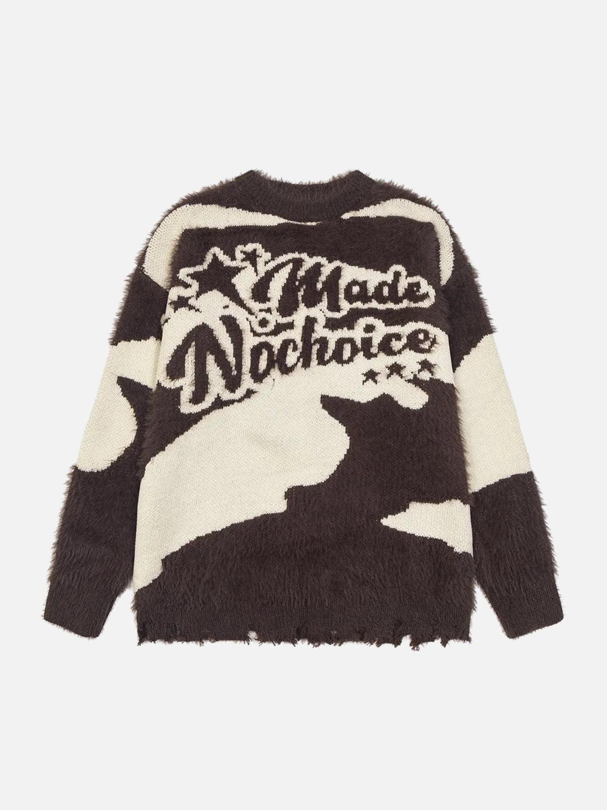Dare to redefine your look with this striking black and cream sweater, where bold graphics collide with a textured, fuzzy finish for ultimate streetwear fashion. Available in versatile sizes from S to XL, this piece embraces an oversized fit that wraps you in comfort while making a statement. The edgy design and distressed hem add a touch of rebellion, perfect for layering over your favorite y2k outfits or pairing with sleek denim. Whether you choose the subtle brown or vibrant pink variations, the vibe remains effortlessly cool. Slip into this sweater and let your outfit ideas flow with urban flair.