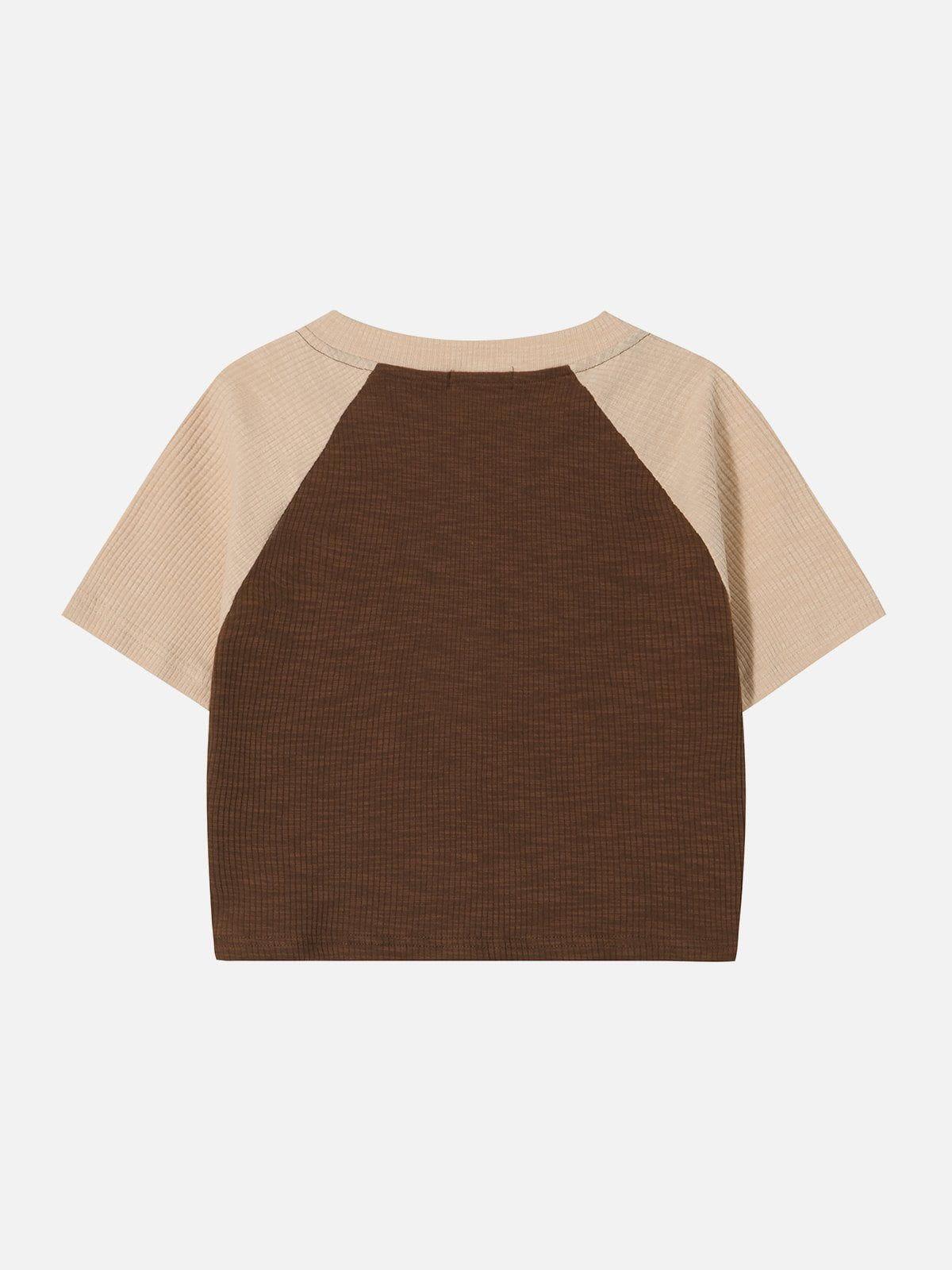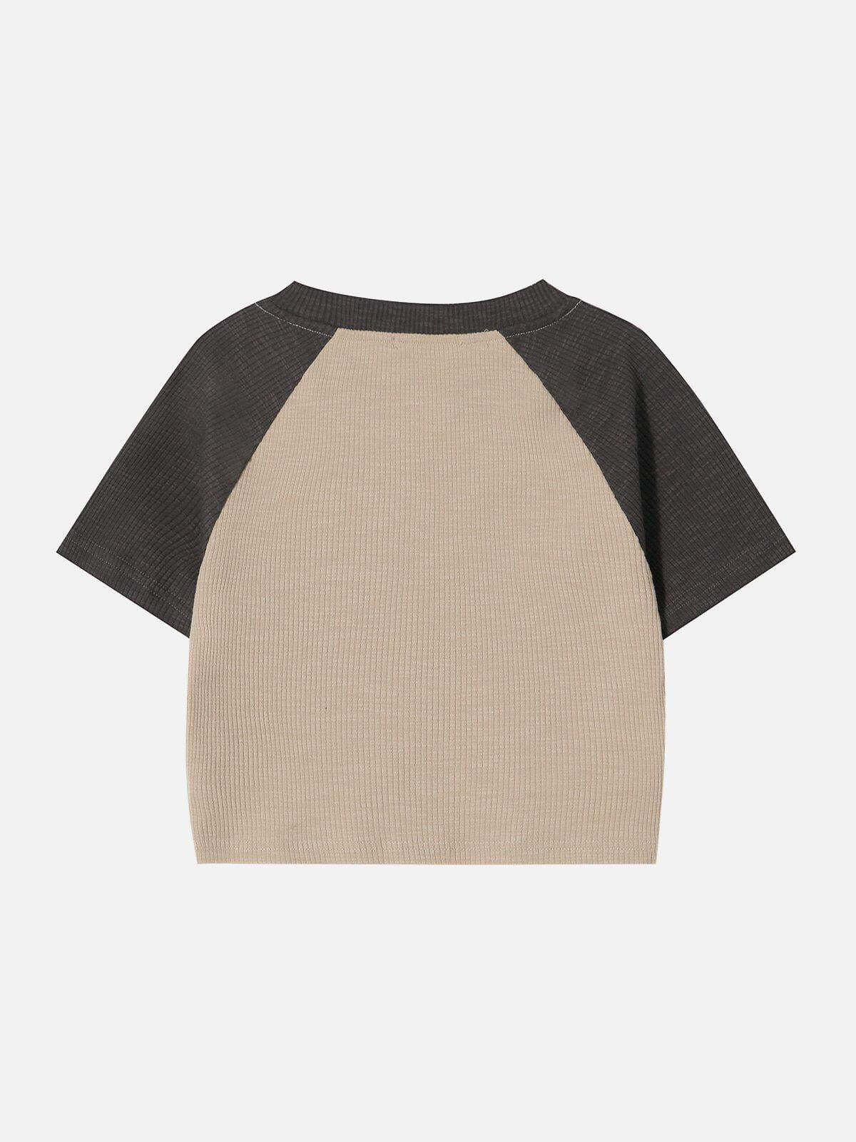 Break boundaries with a vintage vibe in this edgy crop top, featuring a bold ‘District of Columbia’ graphic that demands attention. The rich coffee hue contrasts seamlessly with apricot sleeves, creating a unique color block that stands out in any summer outfit. Crafted for those who embrace urban flair, the textured fabric offers a comfortable fit in sizes S and M, perfect for pairing with high-waisted denim or layered under a statement jacket. Elevate your summer fashion game with this must-have piece that invites you to embrace your individuality.