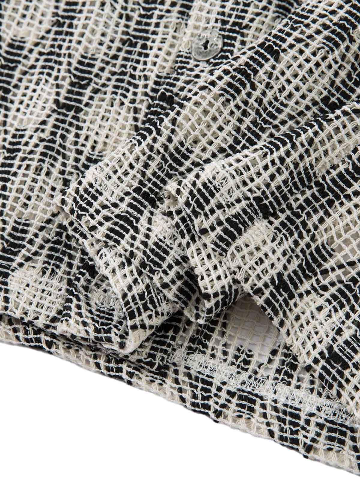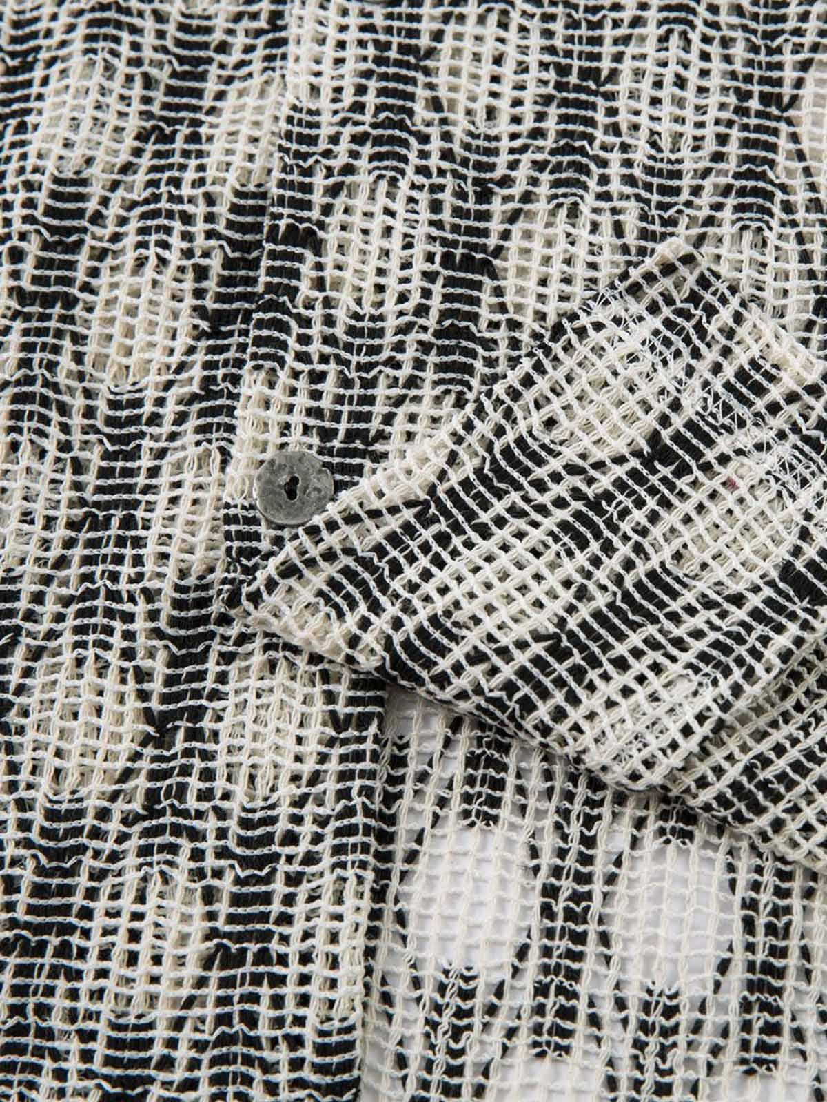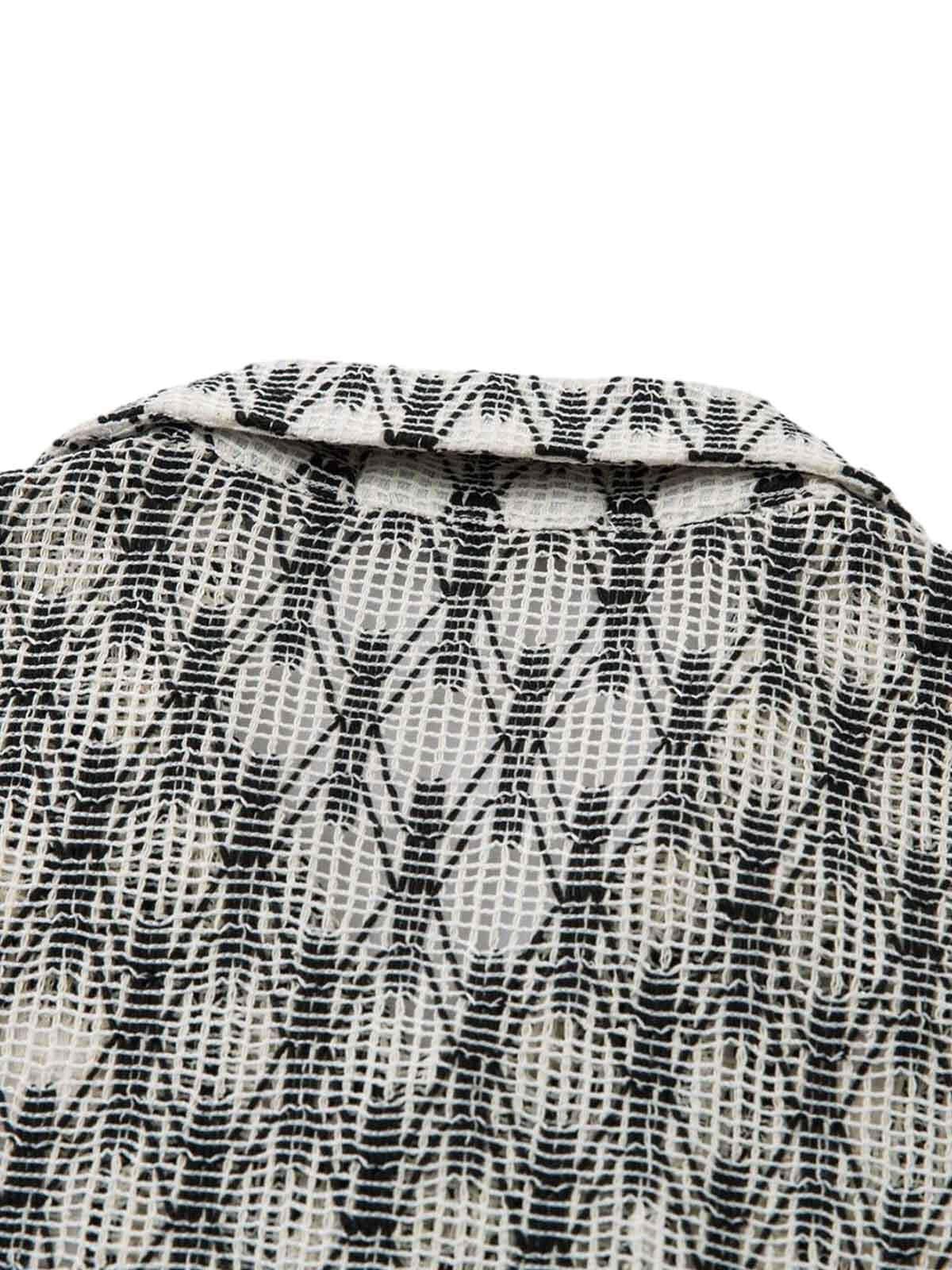 Elevate your streetwear game with this bold geometric shirt, where monochrome meets edgy design for an unforgettable look. The intricate pattern weaves black and white in a dynamic dance across a relaxed fit, offering a touch of urban sophistication. Available in M, L, XL, and 2XL, this piece is perfect for those who appreciate versatility and style. Whether you’re pairing it with distressed jeans or sleek joggers, this shirt delivers outfit inspo for any occasion. Slip into the apricot-hued alternative for a fresh twist that pops against the city backdrop. Ready to redefine your wardrobe?