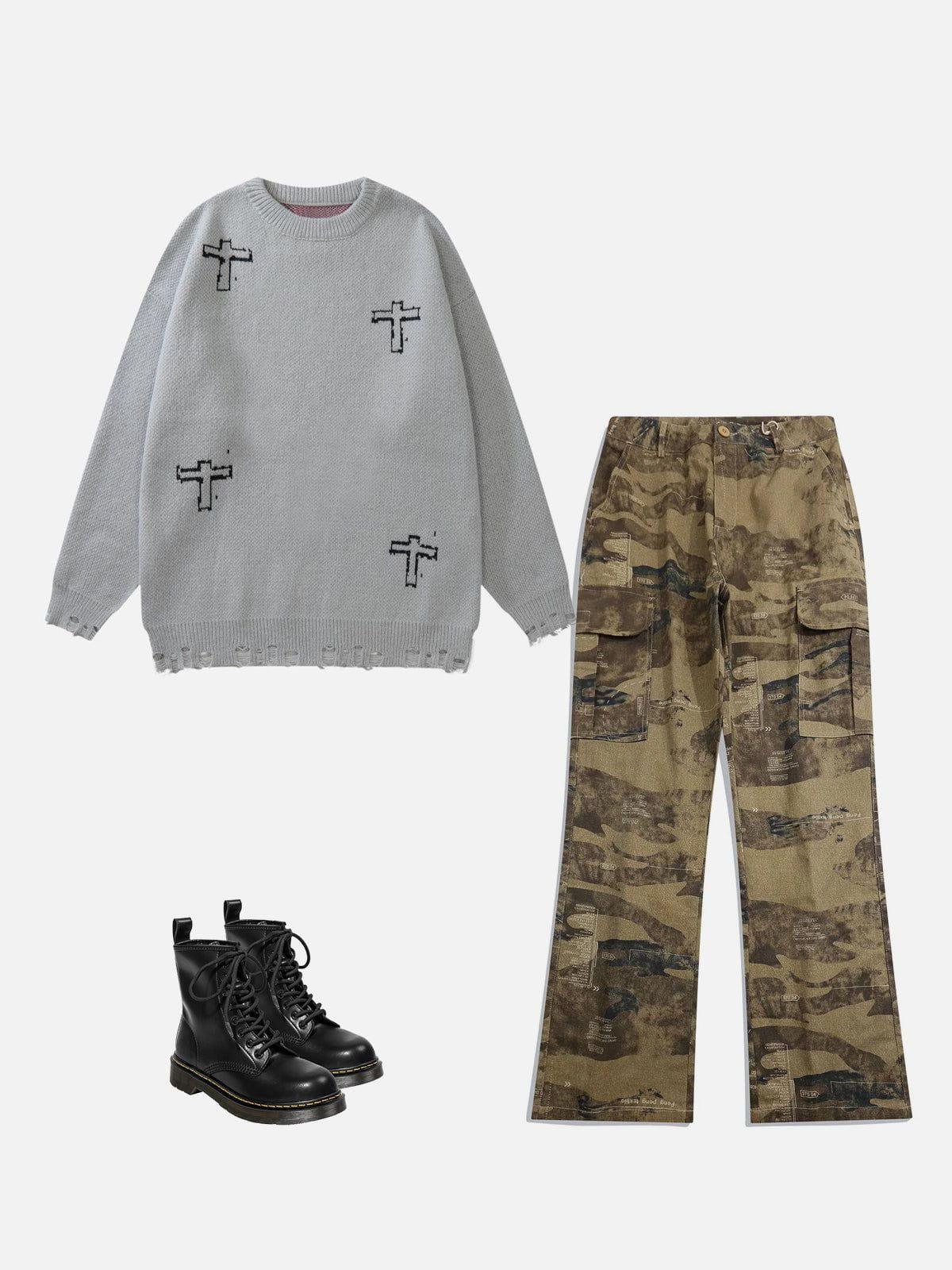 Pull on this edgy gray sweater and let its bold cross graphics do the talking as you navigate the urban jungle. This piece combines a relaxed fit with subtly distressed hems, offering a tactile, worn-in feel that’s perfect for any streetwear enthusiast. Available in sizes S, M, and L, it’s easy to layer for those chillier nights or let it stand out on its own for a true Y2K vibe. Pair it with your favorite jeans or cargo pants for effortless outfit inspo. Embrace your streetwear fashion sense and redefine your style game now.
