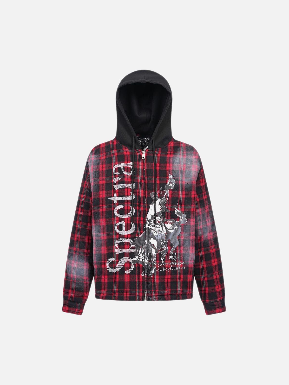 Roll through the urban jungle with a ferocious flair in this bold hoodie, where vivid red plaid meets sleek black accents for a look that screams confidence. The striking graphic print on the front captures the rebellious energy of streetwear fashion, making it a perfect piece for those who dare to stand out. With a comfortable fit available in sizes M through 2XL, this hoodie offers both style and ease, ready to layer over any outfit. Whether you’re pairing it with distressed jeans or keeping it chill with joggers, this hoodie is your go-to for effortless outfit inspo. Slide into the scene with unmistakable swagger and let your style speak volumes.