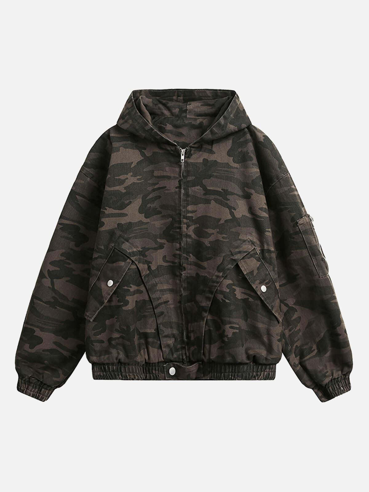 Dominate the urban jungle with this bold camouflage jacket, a masterpiece designed for those who live life on the edge. The rugged texture and earthy tones create an effortless blend of style and attitude, perfect for pairing with your favorite y2k outfits. This hooded piece offers a relaxed fit that’s available in sizes S to XL, providing comfort and versatility for any streetwear fashion enthusiast. Whether you’re layering it over a tee for a casual day out or styling it with distressed jeans for some serious outfit inspo, this jacket is your go-to for making waves. Dare to disrupt the mundane.