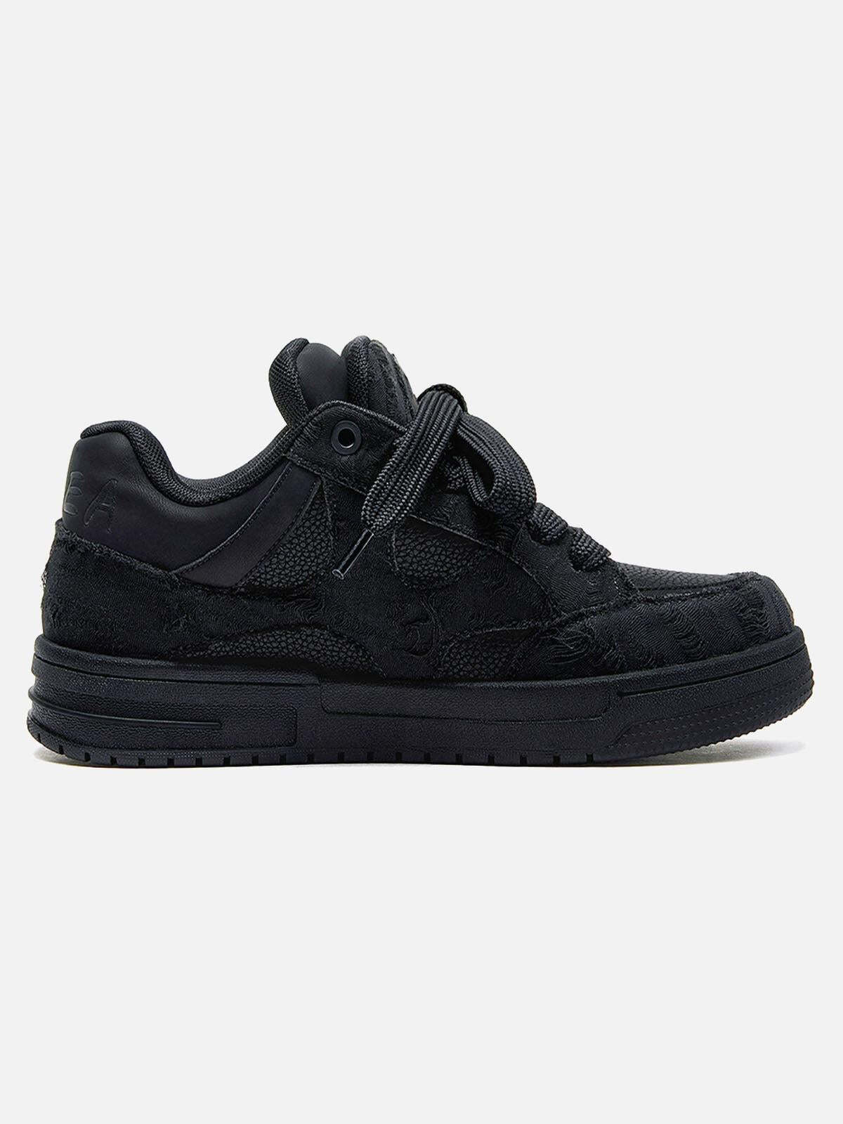 Boldly stride through the city with Destruction Black Knight Skate Shoes, crafted from durable synthetic leather. Featuring a sleek lace-up closure and a perforated design for ultimate breathability, these shoes are built for comfort and style. The robust rubber sole ensures grip on every surface, making them perfect for spring, summer, and fall adventures. Ideal for everyday wear, sports, and street style, these are the go-to shoes for any urban explorer.