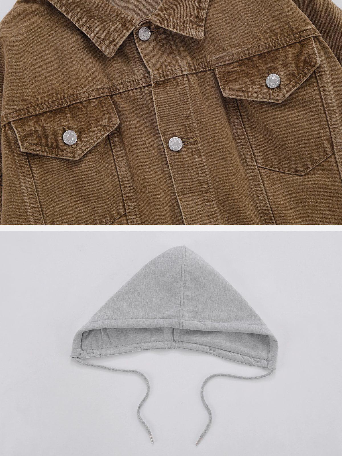 Defy the ordinary with this bold fusion of rugged texture and urban flair, where a khaki denim body meets a sleek gray hoodie insert for a truly distinctive streetwear look. The jacket’s relaxed fit makes it an ideal layering piece, effortlessly transitioning between seasons. Offered in versatile shades of Khaki, Black, and Blue, and available in sizes S through XL, it’s designed to suit any bold personality. Pair it with your favorite sneakers for an effortless y2k vibe. Elevate your streetwear fashion game with this standout piece that demands attention.