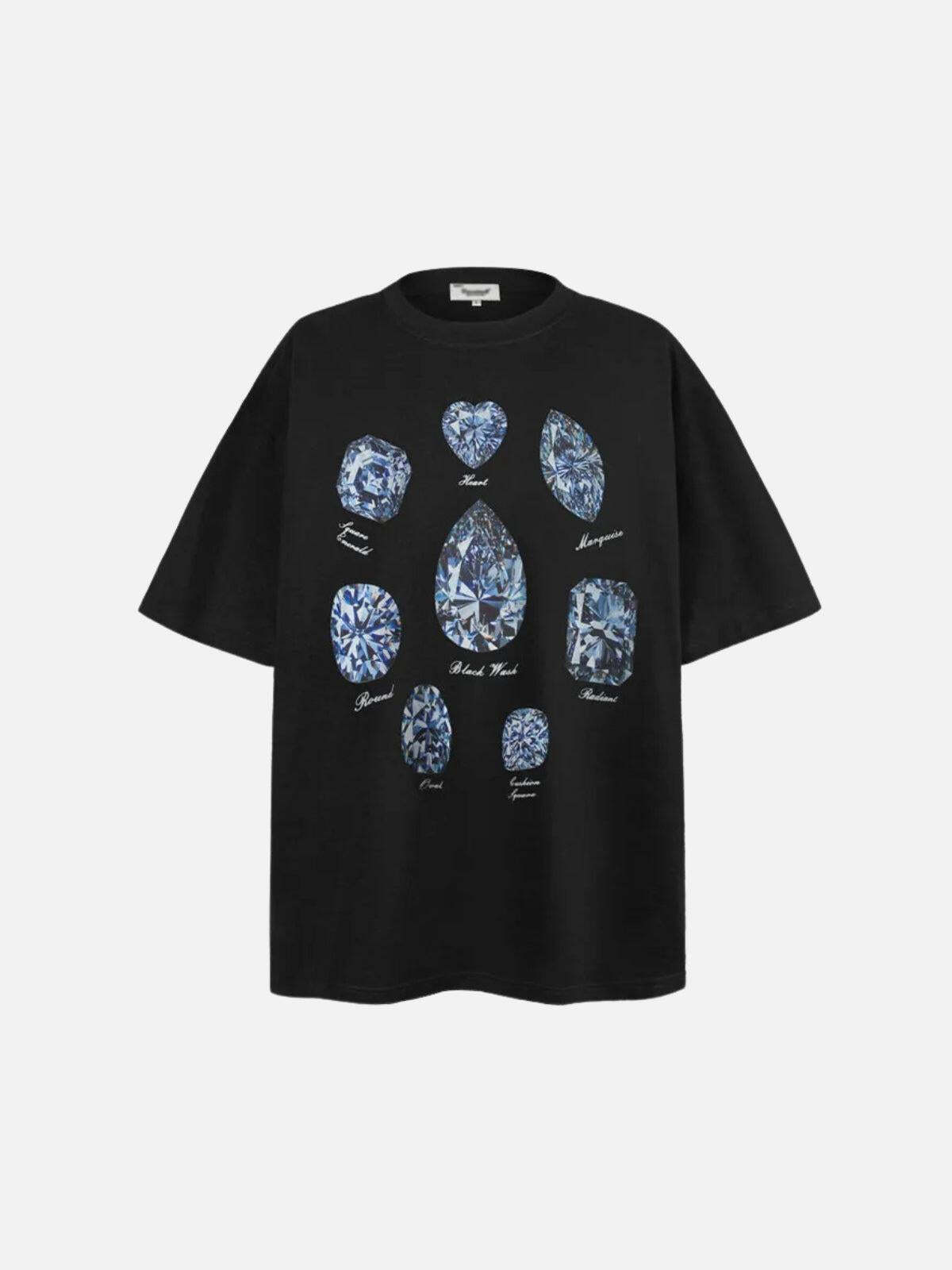 Dripping in urban elegance, this tee transforms everyday wear into a canvas of bold expression with its striking blue gemstone graphics adorning the front. Available in versatile black and white, it offers a relaxed fit that flows effortlessly in sizes M through 2XL, ensuring comfort and style in every move. The soft texture complements the vibrant design, making it a perfect addition to your summer outfit rotation. Pair it with your favorite streetwear staples for an effortlessly cool vibe. Grab yours now and step into the season with unmatched flair.