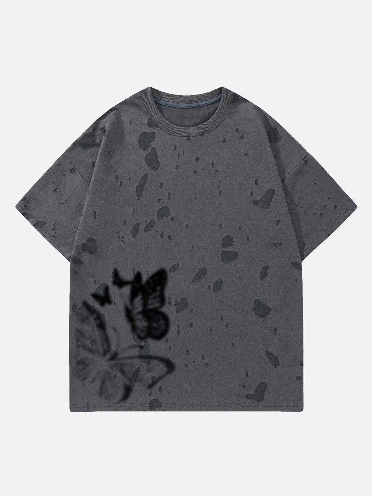 Transform your summer style with this edgy tee that combines a bold splash pattern with striking butterfly graphics, bringing an urban vibe to your wardrobe. Available in versatile gray and black, this shirt is designed to fit comfortably in sizes S, M, and L, making it the perfect addition to any summer outfit. The soft, breathable fabric ensures you stay cool while the relaxed fit allows for effortless layering. Pair it with your favorite streetwear pieces for a look that’s both modern and effortlessly cool. Don’t miss the chance to redefine your fashion game.