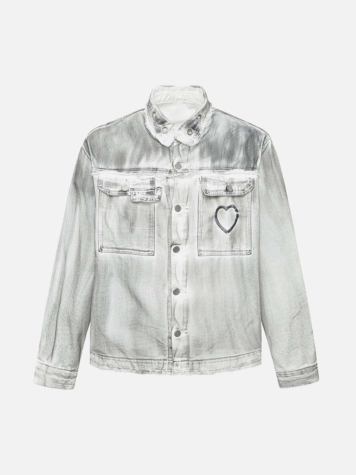 Let your wardrobe reflect your fearless edge with this gray denim masterpiece, featuring a striking gradient wash that transitions from light to dark with unapologetic flair. The artistic heart motif on the chest adds a touch of rebellion, perfect for those who dare to redefine streetwear fashion. With its comfortable fit available in M, L, XL, and 2XL, this jacket offers versatile styling options, whether you’re layering it over a hoodie or pairing it with your favorite Y2K outfits. Embrace the urban vibe and make it your own.