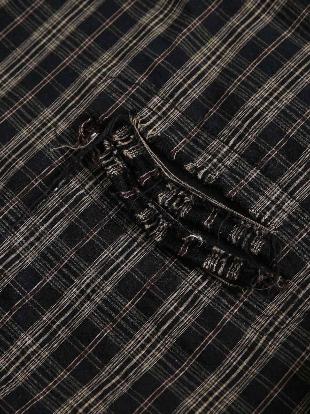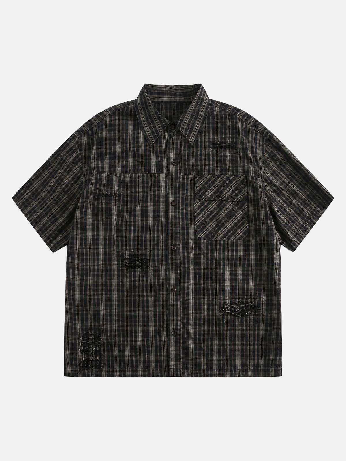 Break free from the ordinary with this edgy, distressed plaid shirt that redefines summer fashion. The bold black design, accentuated with raw, textured details, brings an urban vibe to your wardrobe, making it the perfect companion for those who dare to be different. Available in sizes M, L, XL, and 2XL, this shirt offers a relaxed fit that pairs effortlessly with your favorite jeans or shorts for a laid-back summer outfit. Elevate your seasonal style and let this piece speak volumes without uttering a word.