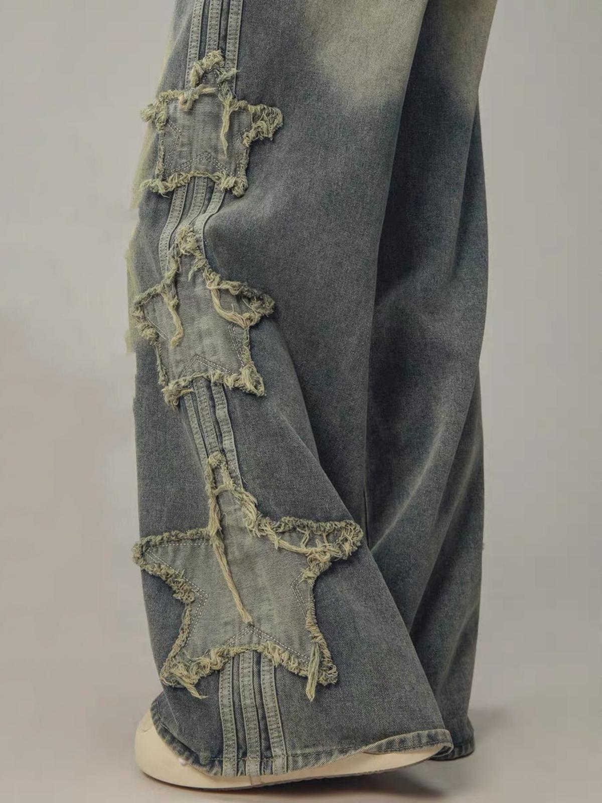 Revolutionize your wardrobe with these bold, star-studded jeans that redefine streetwear fashion. The distressed star patches and sleek stripe accents bring a touch of edgy flair, while the relaxed fit ensures maximum comfort for those on-the-go vibes. Available in versatile blue and black, these jeans offer a perfect blend of urban style and comfort. With sizes ranging from S to XL, find your fit and pair them with your favorite kicks for an outfit that’s ready to own the streets. Step into the spotlight and let your style do the talking.