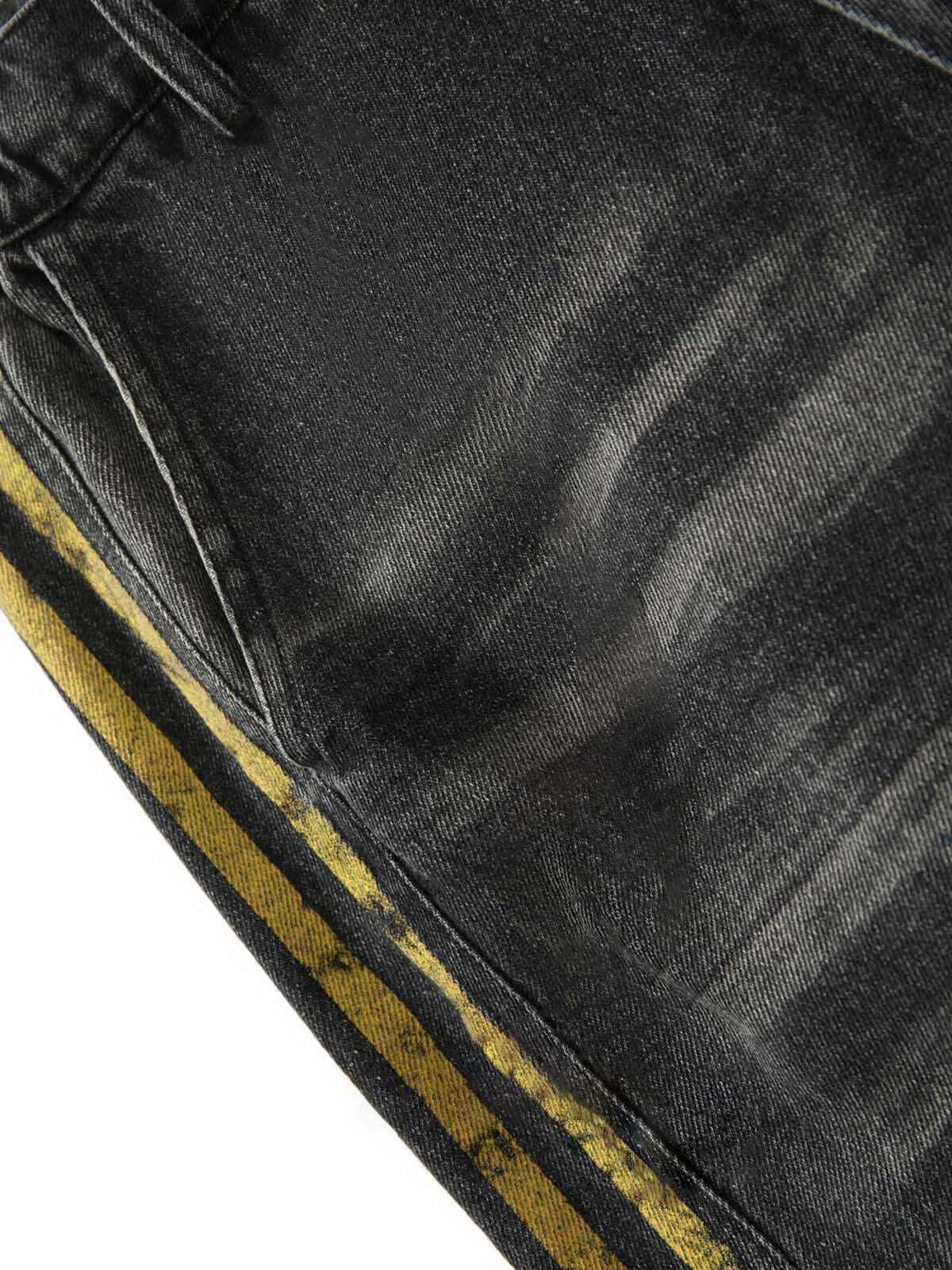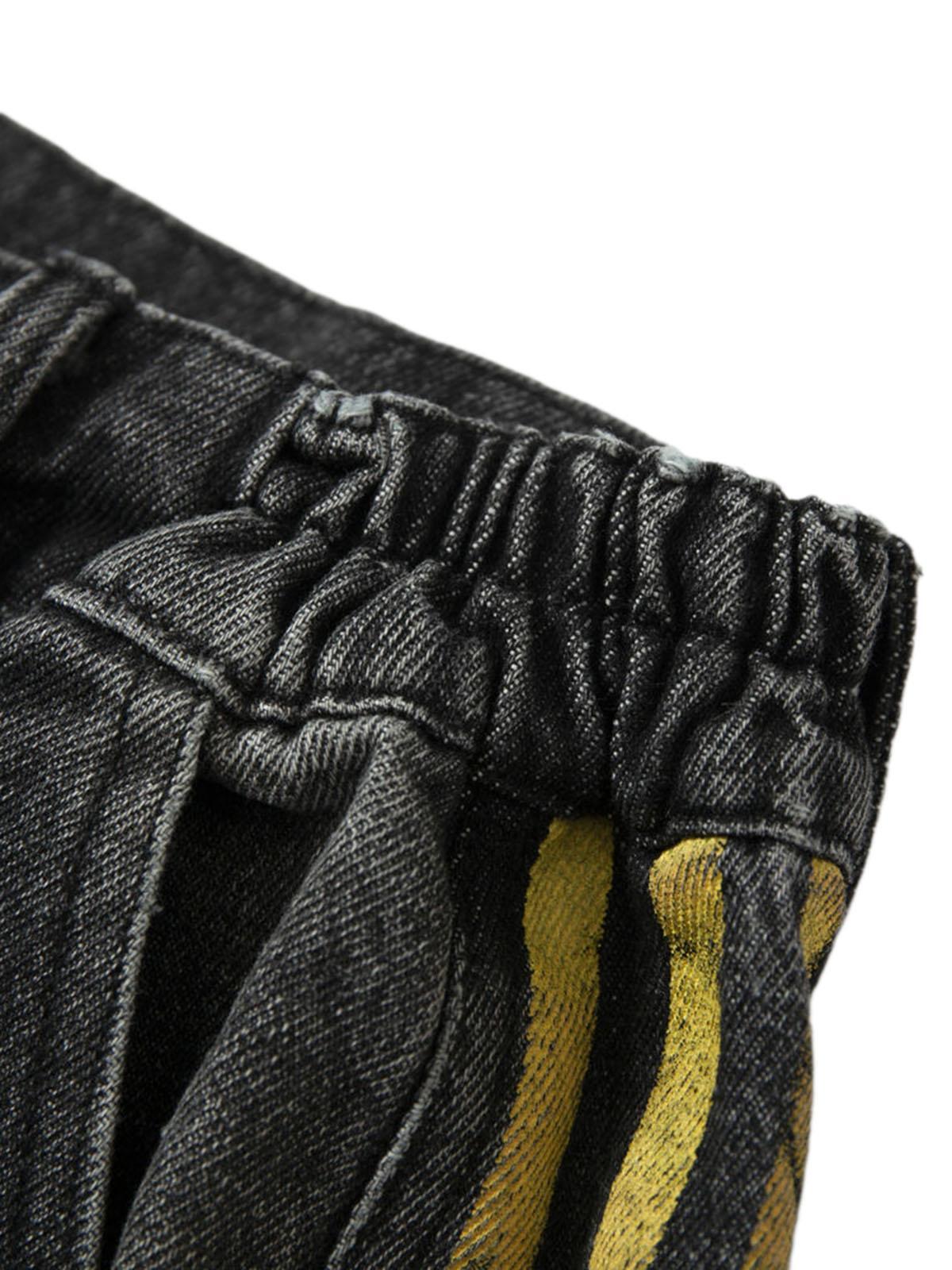 Break boundaries with these bold black streetwear pants, where distressed textures meet striking yellow side stripes for an urban edge. The loose fit offers a comfortable yet assertive silhouette, making them perfect for those who dare to stand out. Available in sizes M, L, and XL, these pants seamlessly blend rugged appeal with modern flair. Pair them with your favorite oversized tee or a sleek bomber jacket for effortless outfit inspo. Gear up and redefine your streetwear fashion today.