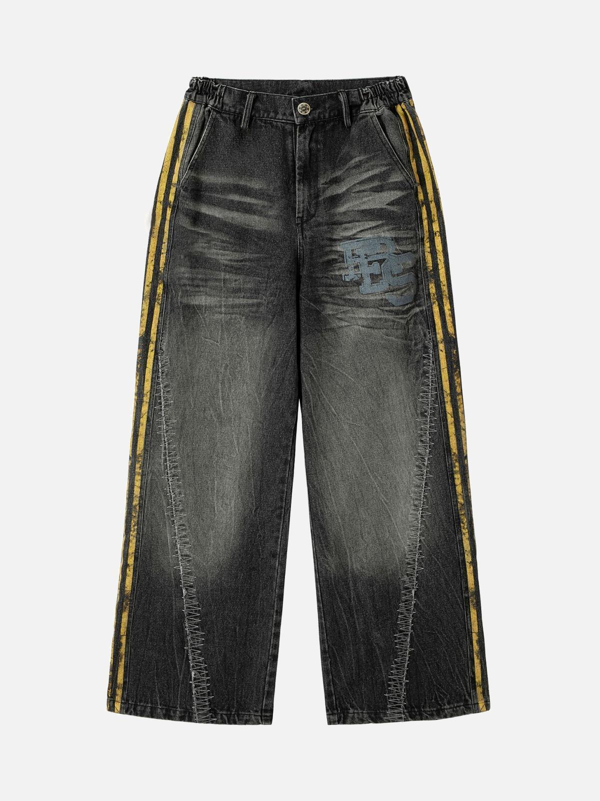 Concert Outfit Distressed Striped Side Chain Patchwork Ripped Straight Jeans High-quality product featuring concert outfit ideas, country concert outfit, fashion outfits and more. Modern design that fits the latest trends. Premium materials ensure durability and comfort. Order now for special offers! Product designed with attention to every detail. Suitable for all occasions and personal styles.