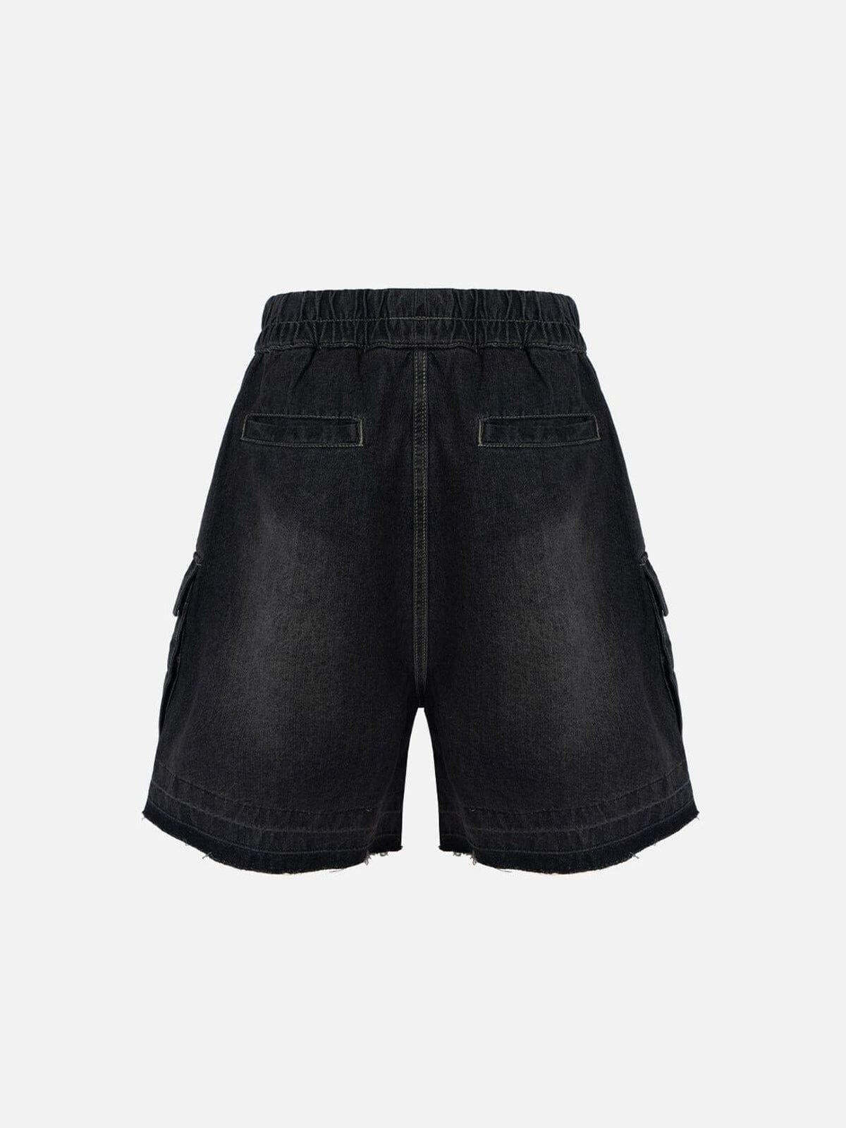 Revamp your summer wardrobe with these edgy, black cargo shorts, designed to turn heads on every street corner. The rugged texture and oversized pockets combine functionality with bold style, making these shorts perfect for urban adventures. Featuring an elastic waistband and durable drawstrings, they offer a comfortable fit in sizes ranging from XS to XL, ensuring everyone can rock this look. The raw hemline adds a touch of rebellious flair, while the versatile black shade pairs effortlessly with any top for the ultimate summer fashion inspo. Slip into these shorts and redefine your streetwear game.