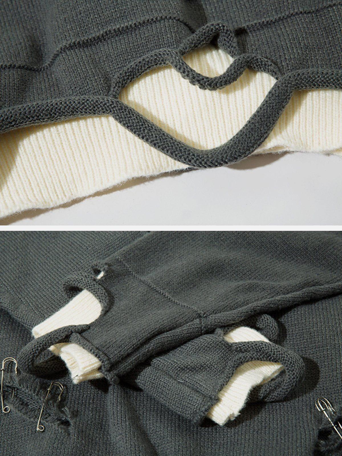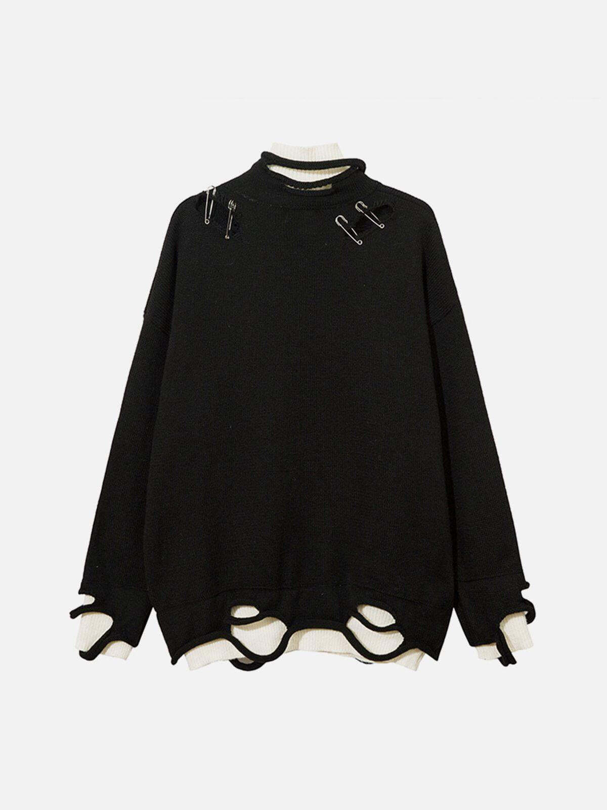 Embrace the edge with this unapologetically bold sweater that screams urban rebellion. The oversized fit drapes effortlessly, offering comfort and style in every stitch. Its deep gray hue, offset by stark black safety pin accents and distressed detailing, creates a gritty yet refined aesthetic that’s perfect for any streetwear fashion aficionado. Layer it over a crisp white tee to let the graphic lettering pop, or pair it with ripped jeans for those iconic y2k outfits. Available in sizes S to XL, this piece transforms any look with its dynamic textures and fearless vibe. Gear up and redefine your wardrobe’s limits.