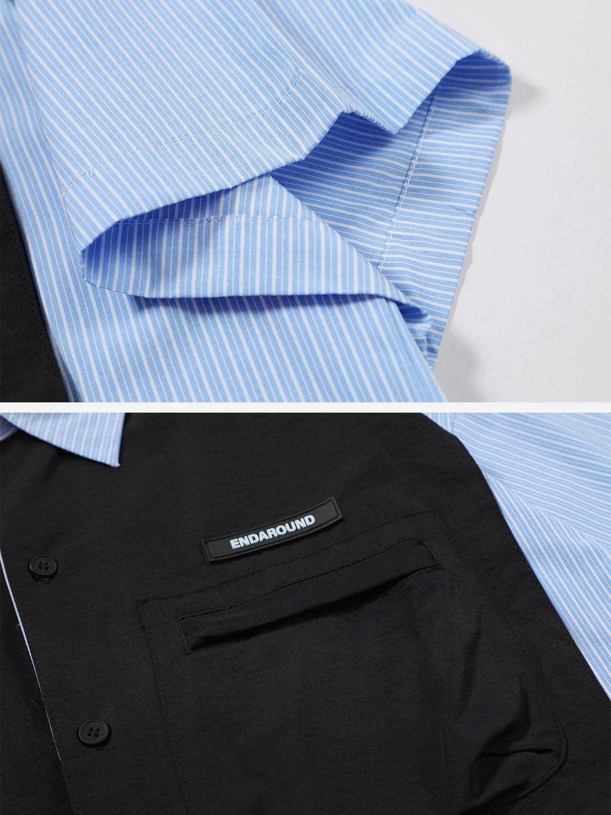 Stylish Concert Outfit: Fake Two-piece Patchwork Short Sleeve Shirt for Music Lovers