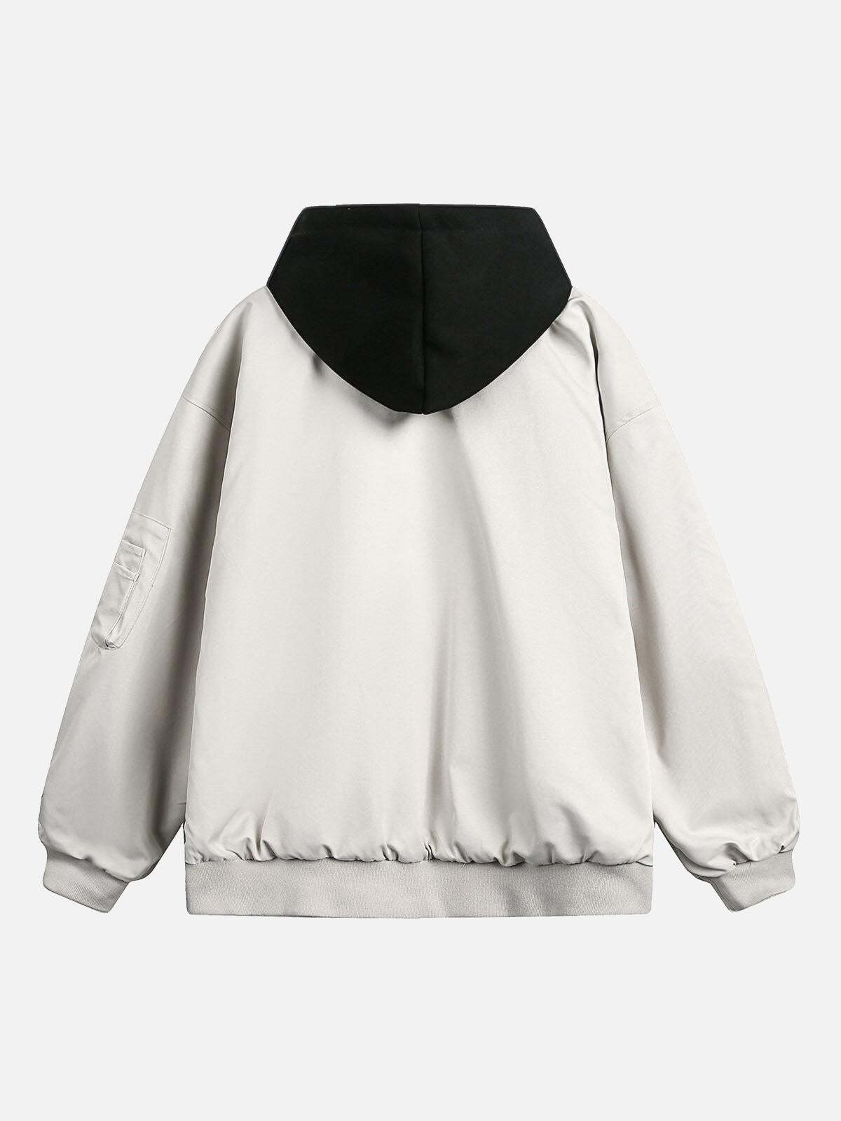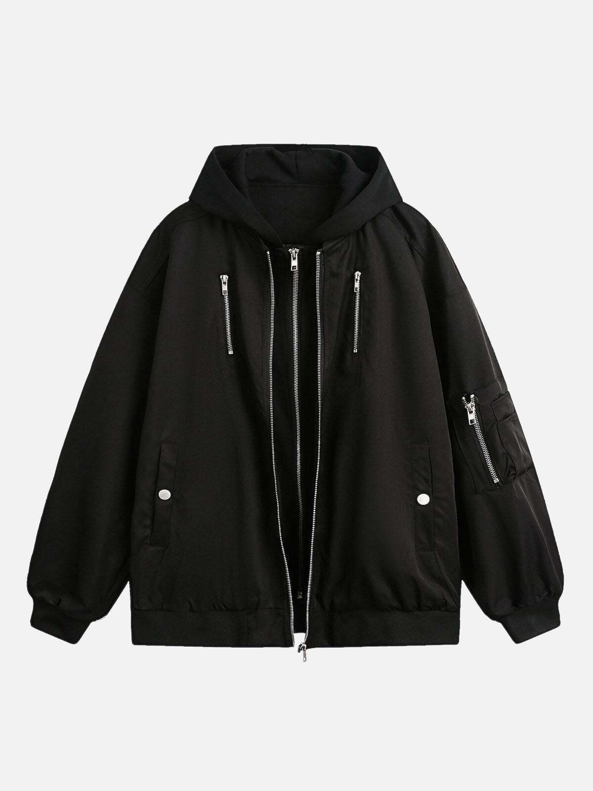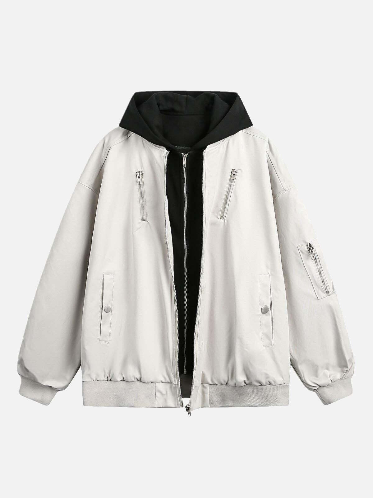 Concert Outfit Faux Two-Piece Multi Pocket Spliced Hooded Bomber Jacket High-quality product featuring concert outfit ideas, puffer jacket outfit, country concert outfit and more. Modern design that fits the latest trends. Premium materials ensure durability and comfort. Order now for special offers! Product designed with attention to every detail. Suitable for all occasions and personal styles.