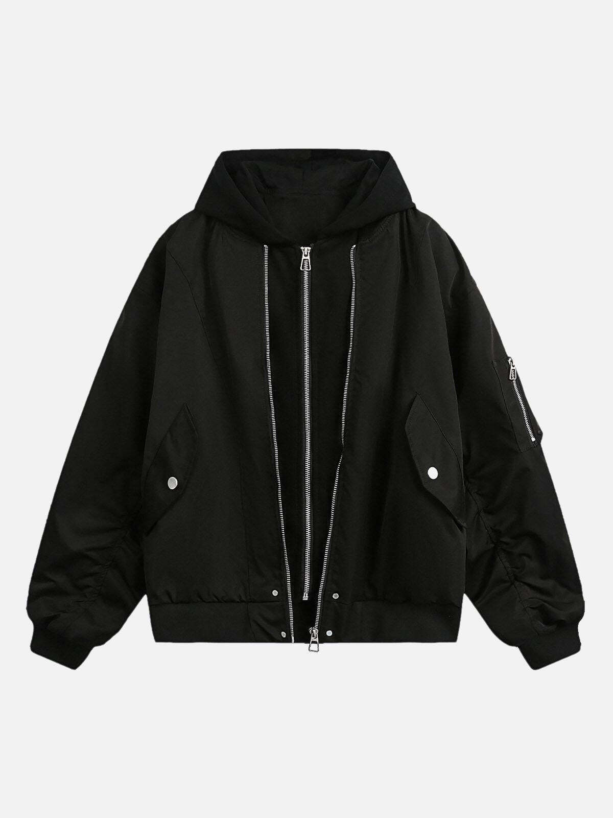 Concert Outfit Faux Two-piece Pleated Spliced Hooded Bomber Jacket – Concert Outfit