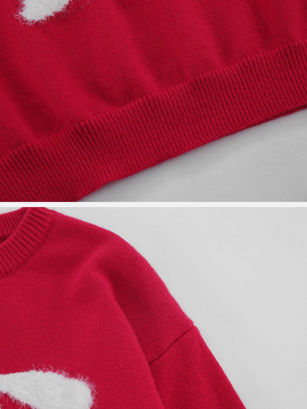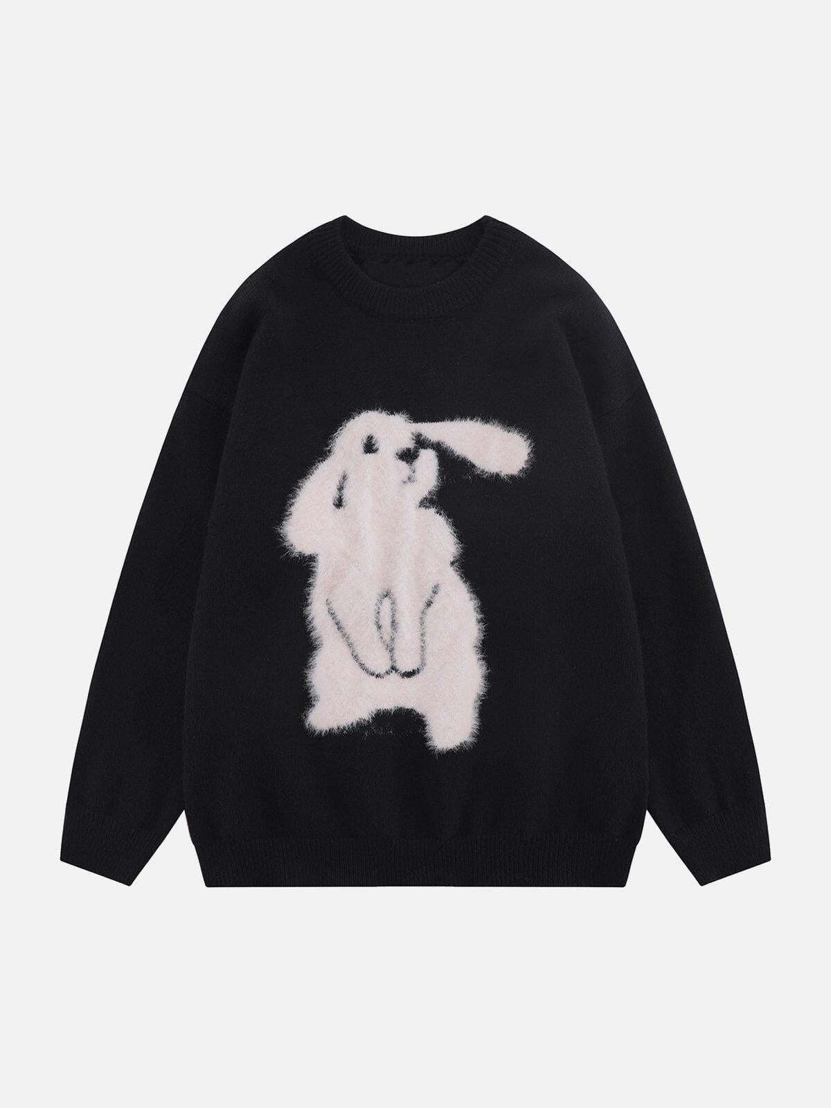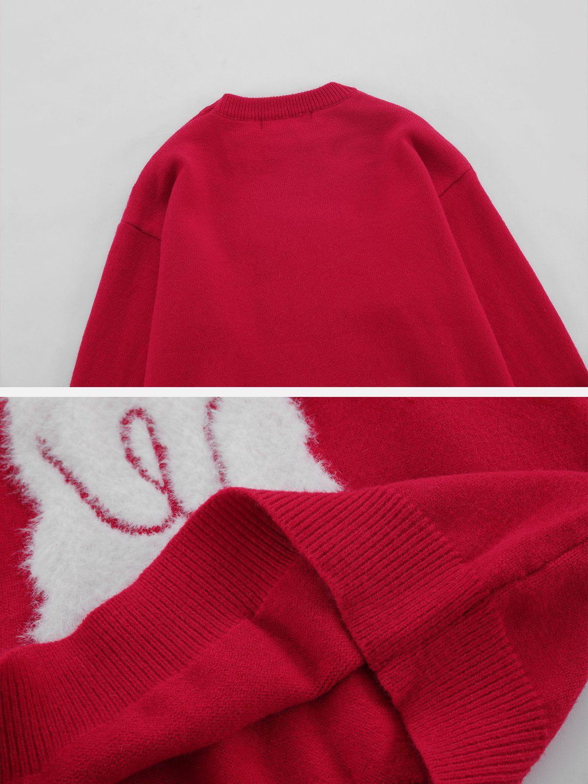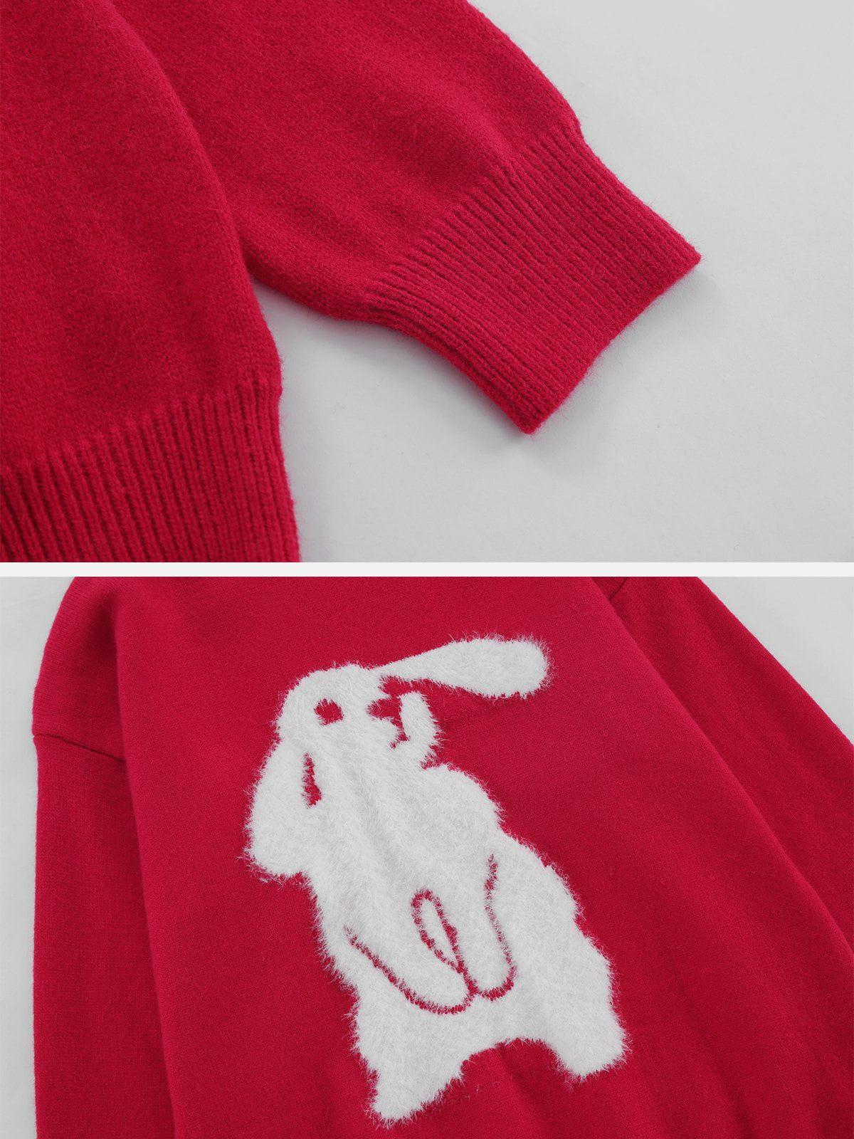 Embrace the playful edge of streetwear fashion with this bold knit sweater, showcasing a striking white rabbit graphic that pops against its vibrant red backdrop. The textured design adds depth and intrigue, making it a standout piece in any urban wardrobe. Available in sizes XS to L, this sweater offers a comfortable and relaxed fit, perfect for layering or rocking solo on cooler days. Whether you’re pairing it with sleek black jeans or mixing it up with your favorite y2k outfits, this sweater is your ticket to effortless style. Dive into its unique vibe and redefine your outfit inspo with confidence.