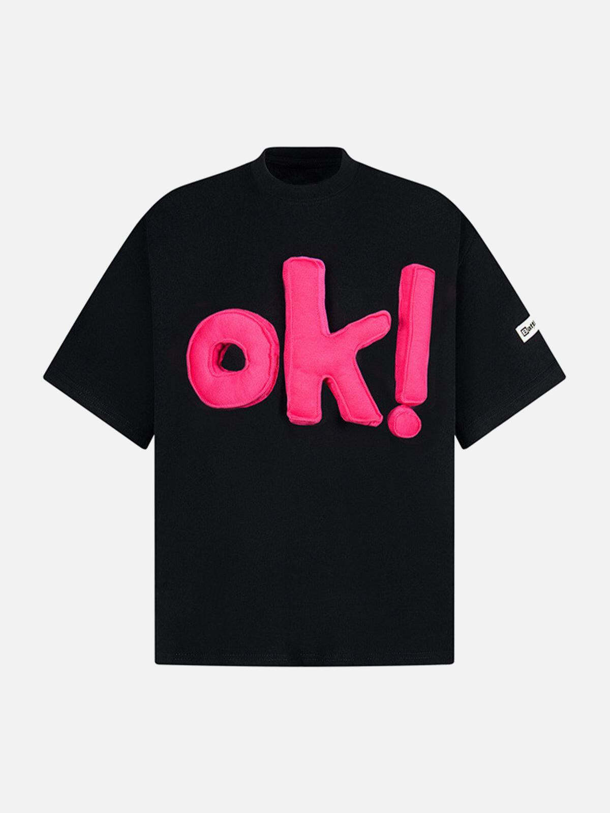 Turn heads and own the streets with this edgy t-shirt that screams boldness with its vibrant pink ‘ok!’ statement splashed across a sleek black canvas. The textured lettering pops against the backdrop, making it a standout piece in any summer outfit. Available in versatile shades of light gray and coffee too, this piece is designed for those who refuse to blend in. With sizes ranging from M to XL, its relaxed fit ensures comfort without sacrificing style. Pair it with your favorite jeans or shorts for an effortless summer fashion inspo that speaks volumes. Elevate your urban wardrobe with this unapologetic expression of style.