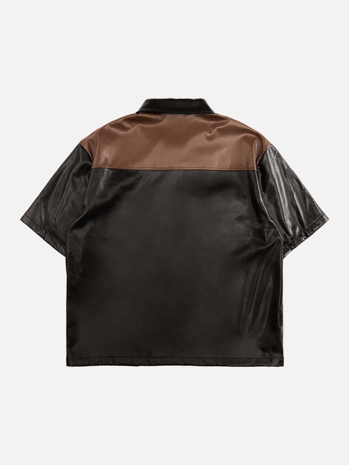 Concert Outfit Gangster Rap Patchwork Contrast Leather Shirt – Concert Outfit