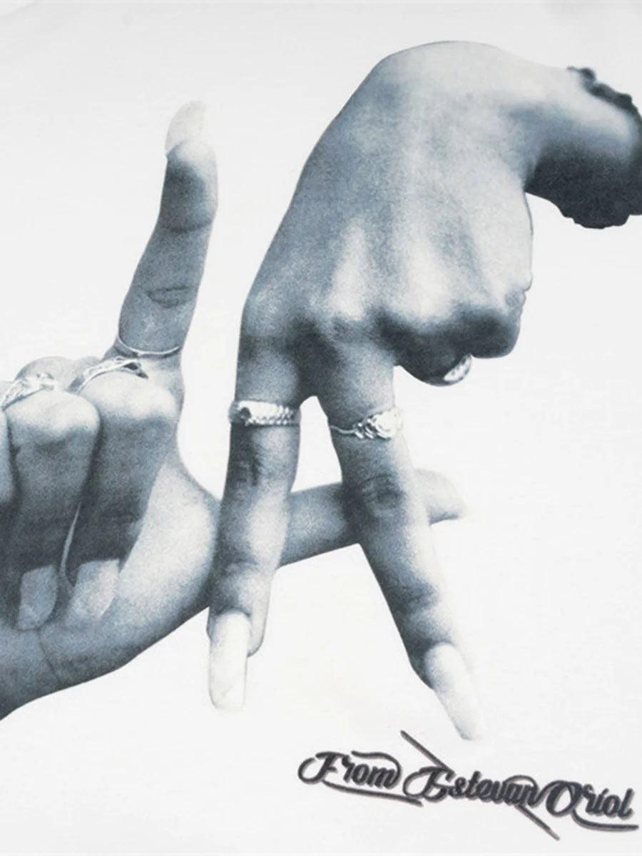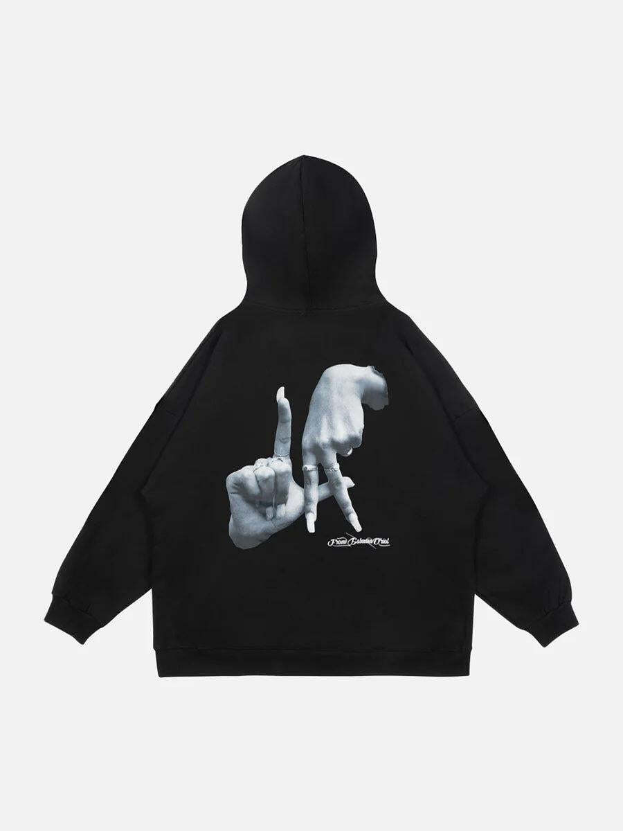 Break the monotony with this bold hoodie, where art meets urban attitude. The striking black canvas is your playground, featuring a powerful hand graphic that speaks volumes without saying a word. Available in both timeless black and crisp white, this hoodie wraps you in comfort while keeping your style sharp and unapologetic. The relaxed fit is perfect for layering over your favorite Y2K outfits, while the soft texture ensures all-day wearability in sizes M, L, and XL. Pair it with distressed jeans or joggers for effortless streetwear fashion that’s ready to conquer the city. Own the vibe and let your wardrobe do the talking.