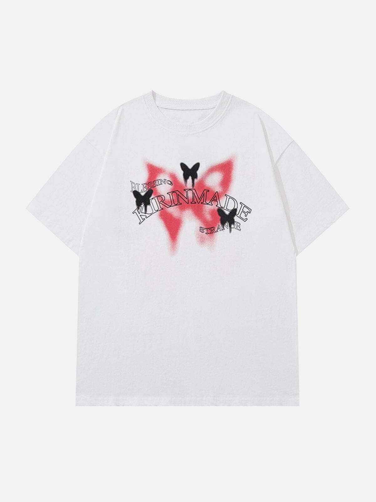 Embrace the urban edge with a tee that speaks volumes through its bold graphics and rebellious spirit. The striking red spray-paint design, accentuated by enigmatic black butterflies, transforms this piece into more than just clothing—it’s a canvas of expression. Available in crisp white and classic black, this shirt offers a relaxed fit that complements your summer style effortlessly, whether you’re going for a laid-back vibe or a daring ensemble. Crafted to perfection, it’s available in sizes S, M, and L, ensuring a fit that feels just right. Pair it with distressed jeans or layer it under a sleek jacket for endless summer fashion inspo. Ready to redefine your wardrobe?