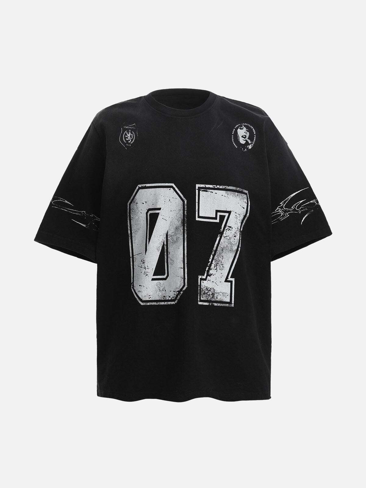 Step into the future of streetwear with this bold tee, where striking graphics and an oversized ’07’ command the spotlight against a backdrop of sleek monochrome. The distressed detailing and abstract motifs give it an urban edge, perfect for those who live at the intersection of style and rebellion. Available in crisp white and classic black, this tee ensures you never blend into the crowd, whether you’re rocking it in S, M, L, or XL. Its relaxed fit and premium texture make it an ideal base for layering up your summer outfit or standing alone as a statement piece. Dare to redefine your summer fashion and let your outfit speak volumes.
