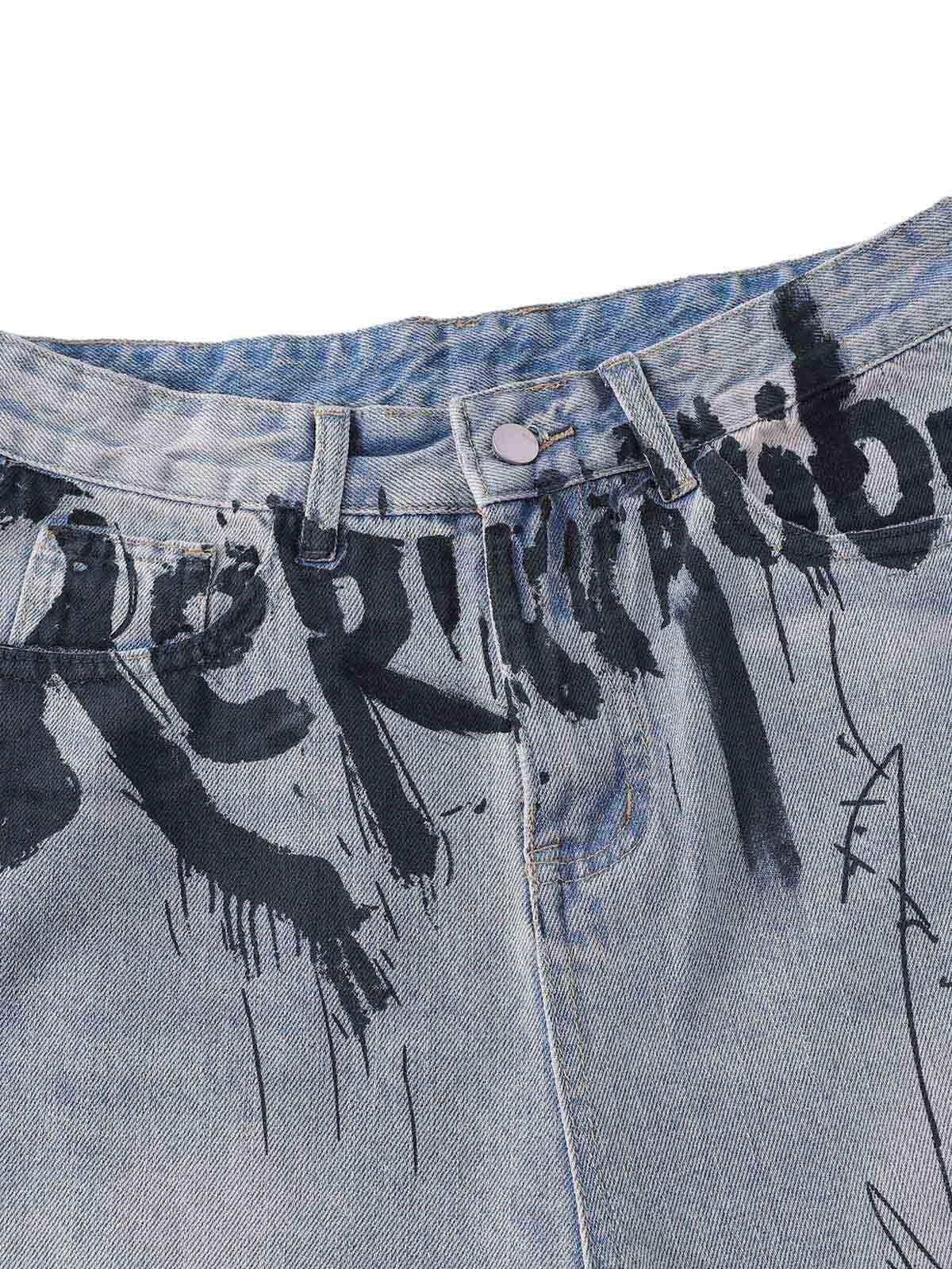 Unleash your inner artist with these bold denim shorts, where urban graffiti meets effortless summer style. The striking blue canvas is splashed with edgy black graphics, making each piece a unique work of street art. Designed for those who dare to be different, the relaxed fit offers comfort in every step, while the high-quality fabric ensures durability on city adventures. Available in sizes S through XL, these shorts are the ultimate addition to your summer fashion arsenal. Pair them with a crisp white tee and sneakers for a look that commands attention on the streets. Dive into the season with confidence and make these shorts your go-to summer outfit.