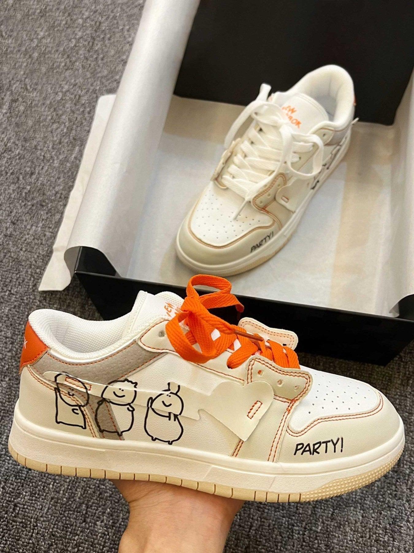Unleash your inner trendsetter with these bold sneakers, where playful doodles meet vibrant orange accents for a look that’s undeniably urban. The beige base provides a versatile canvas, complemented by eye-catching graphics that infuse an artistic edge into every step. Perfectly cushioned to take on the streets, these kicks are available in sizes 36 through 44, ensuring a snug fit for any style explorer. Pair them with your favorite y2k outfits for a fresh spin on streetwear fashion. Ready to redefine your sneaker game?